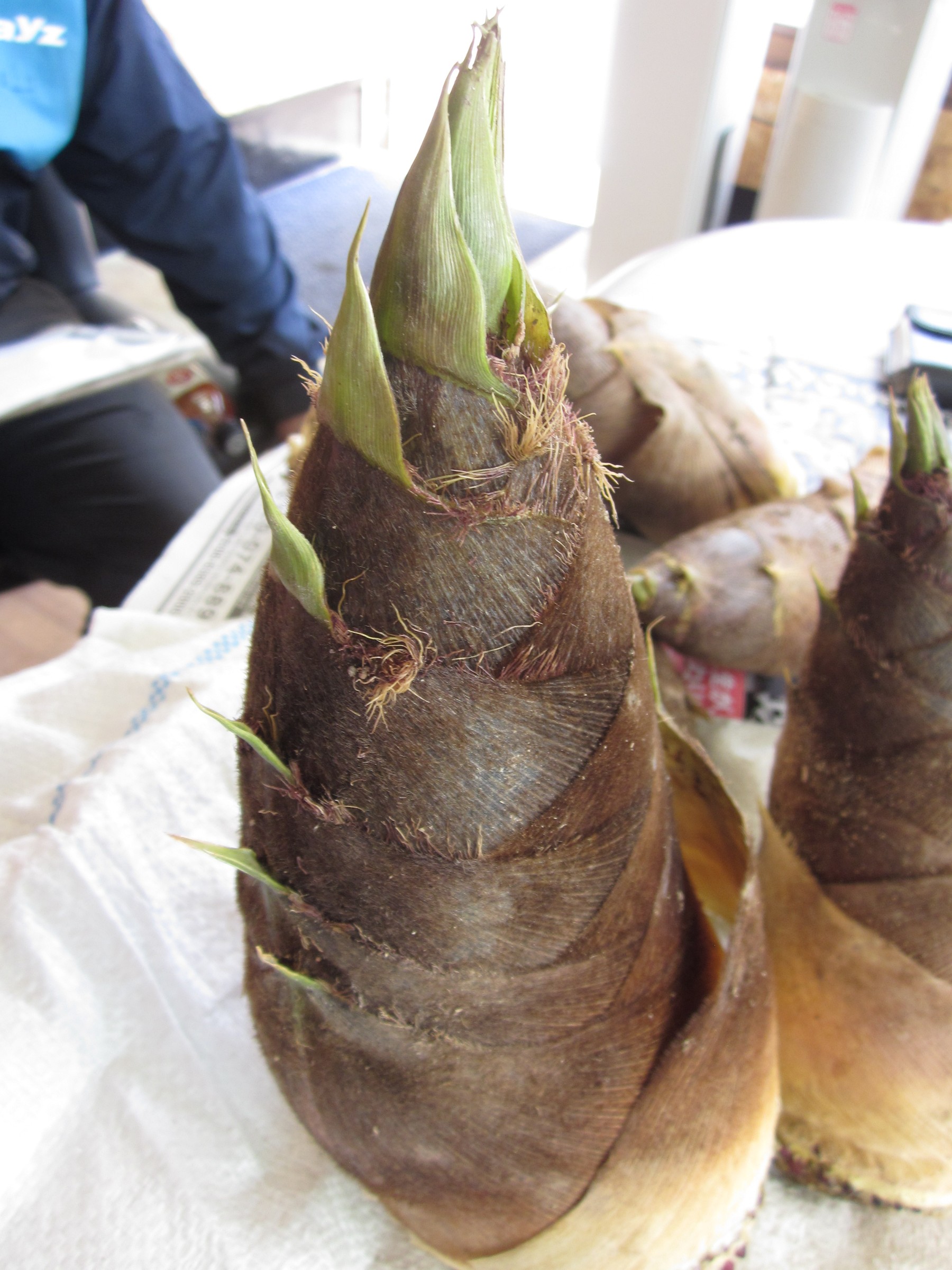 竹林の地主さんから、お礼にとカケノコを頂いたそうですが、皮をむいてみると新鮮な香りがします。