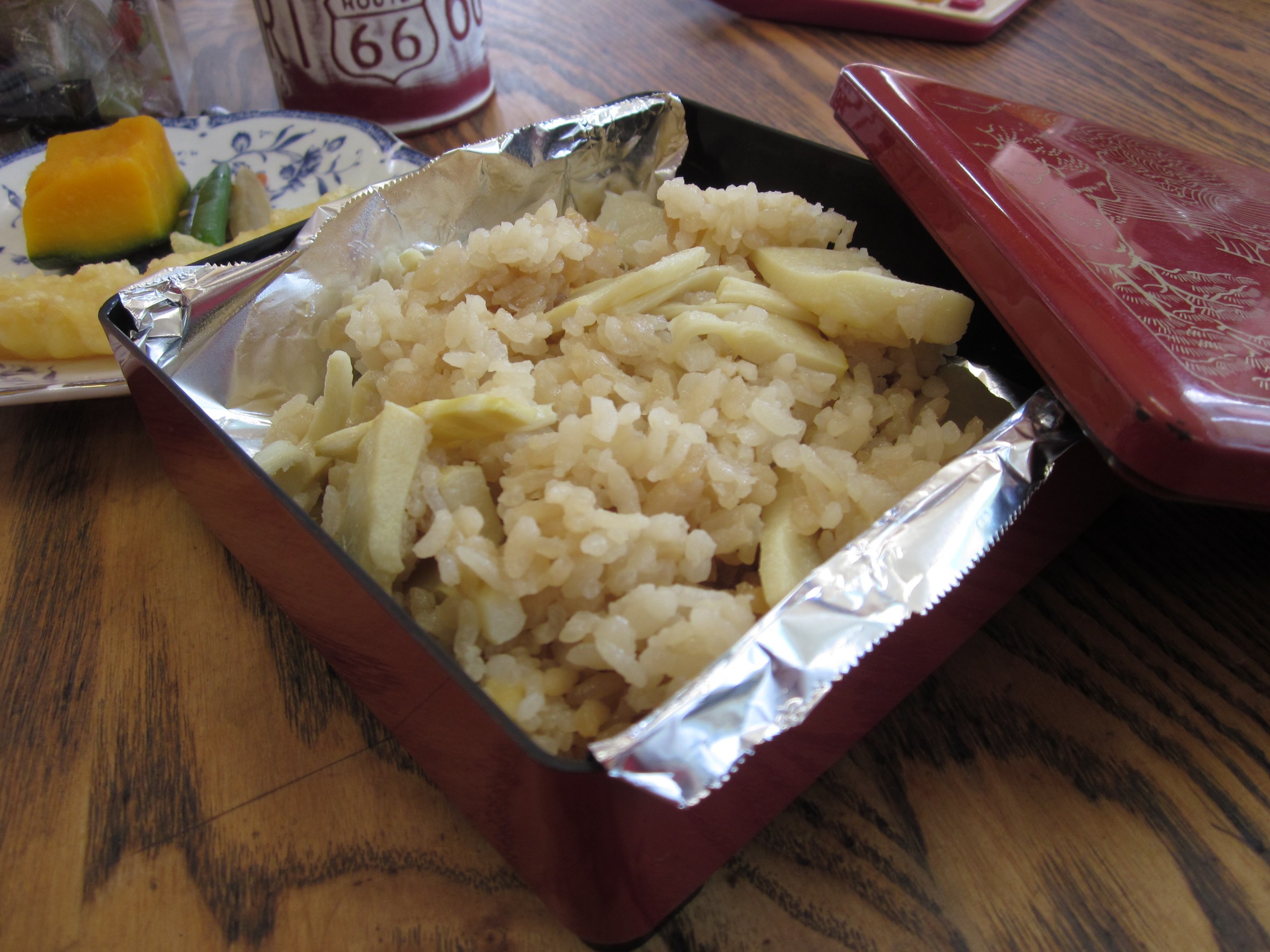 早速おかぁさんが、タケノコご飯を作ってくれたので、店でみんなで一緒に舌鼓を売ったのです。