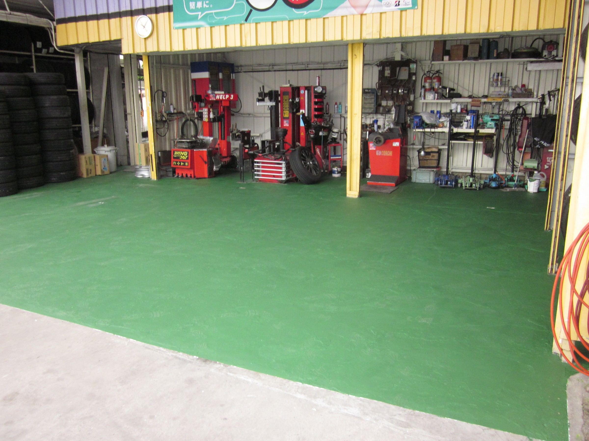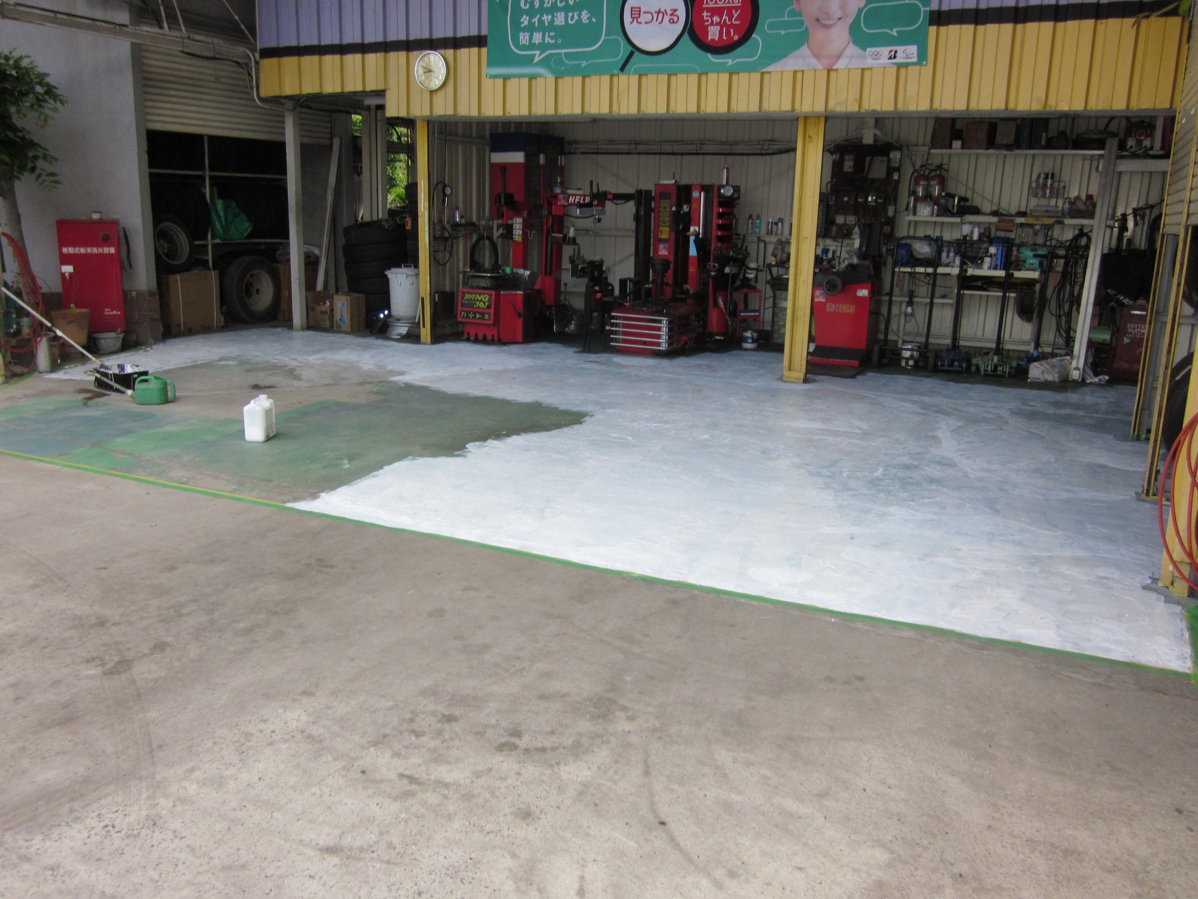 連休の合間に作業場の床の塗り替えをしました。