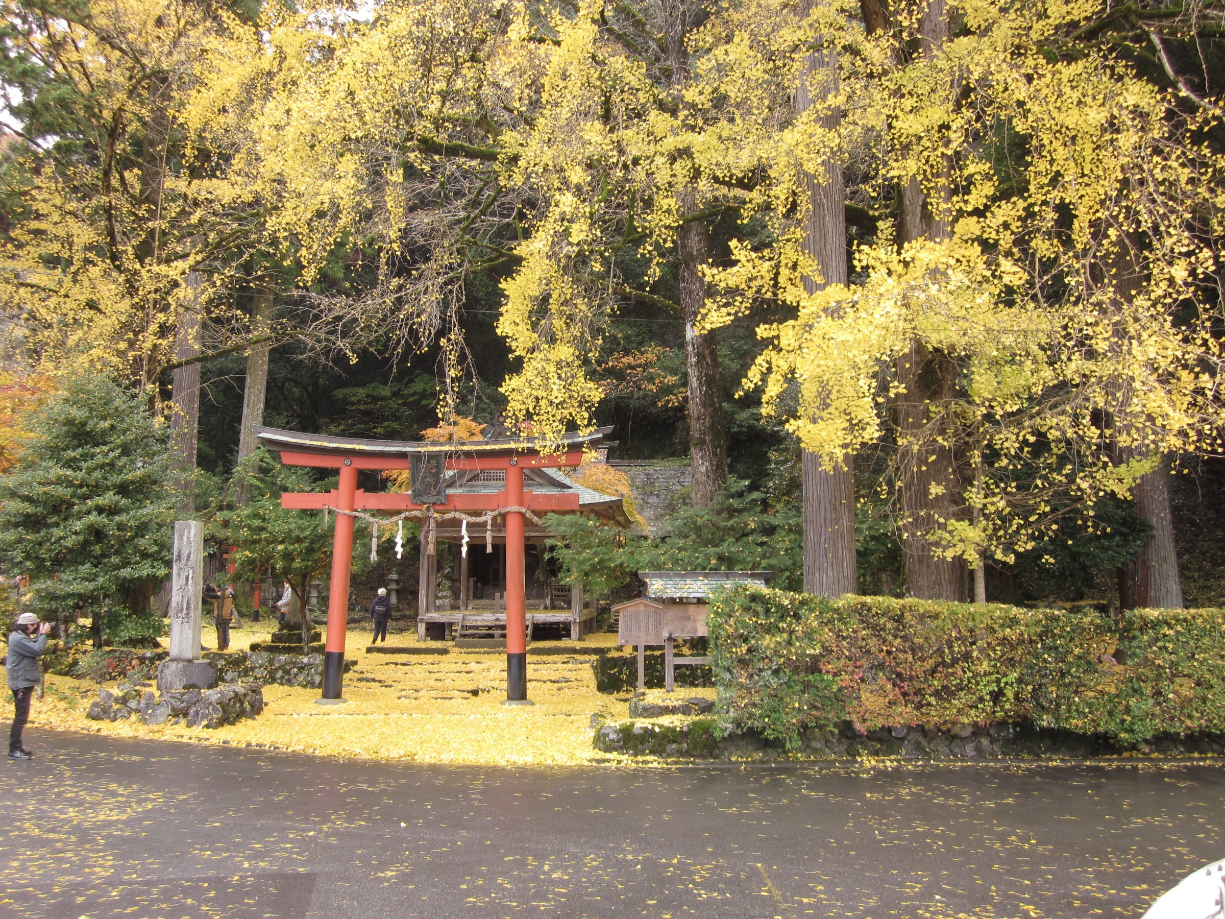 黄葉と鳥居の色のバランスがとても良く、カメラ愛好家のスポットになっているのでしょうね