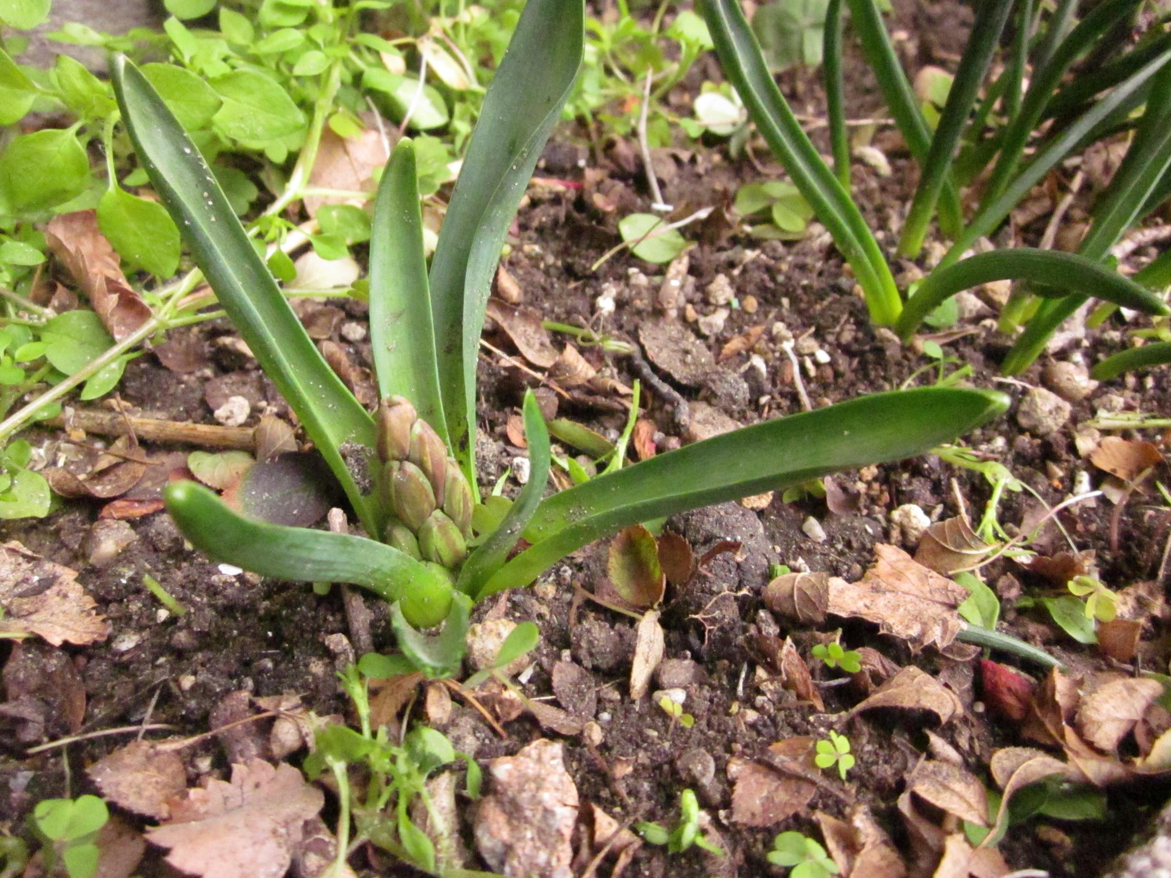 去年、鉢植えから植え替えたクロッカスですが、手前が親で向こうが子供たちです。