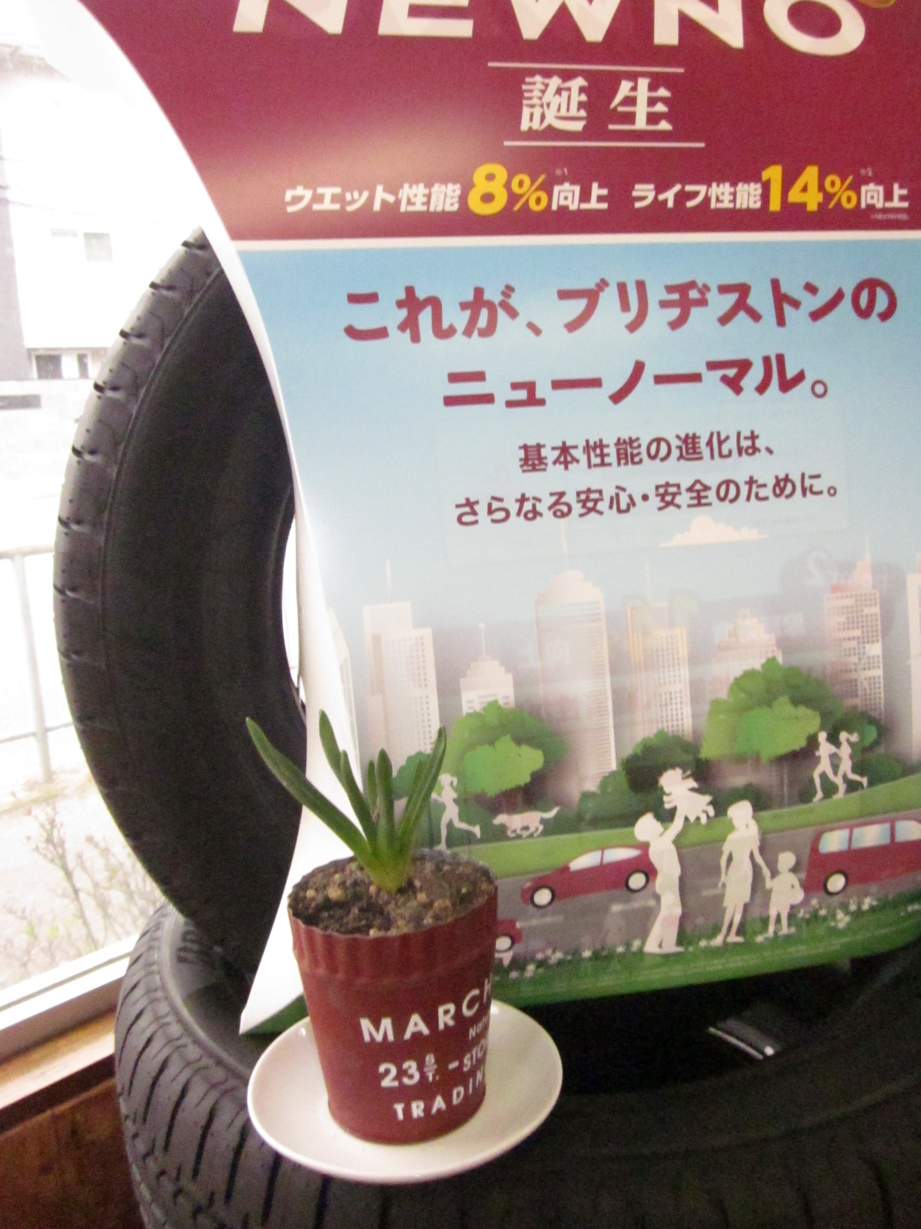 おれ達お父さんの店「ミスタータイヤマン高槻」の植えてある木の根元から、「クロッカス」の