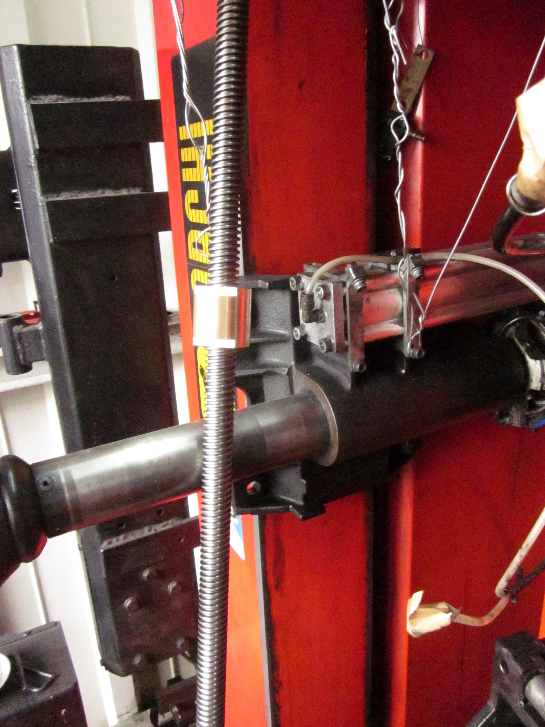 故障と思う箇所をワイヤーで天井から吊るして、台形ネジのシャフトと丸ネジを取り外しました。