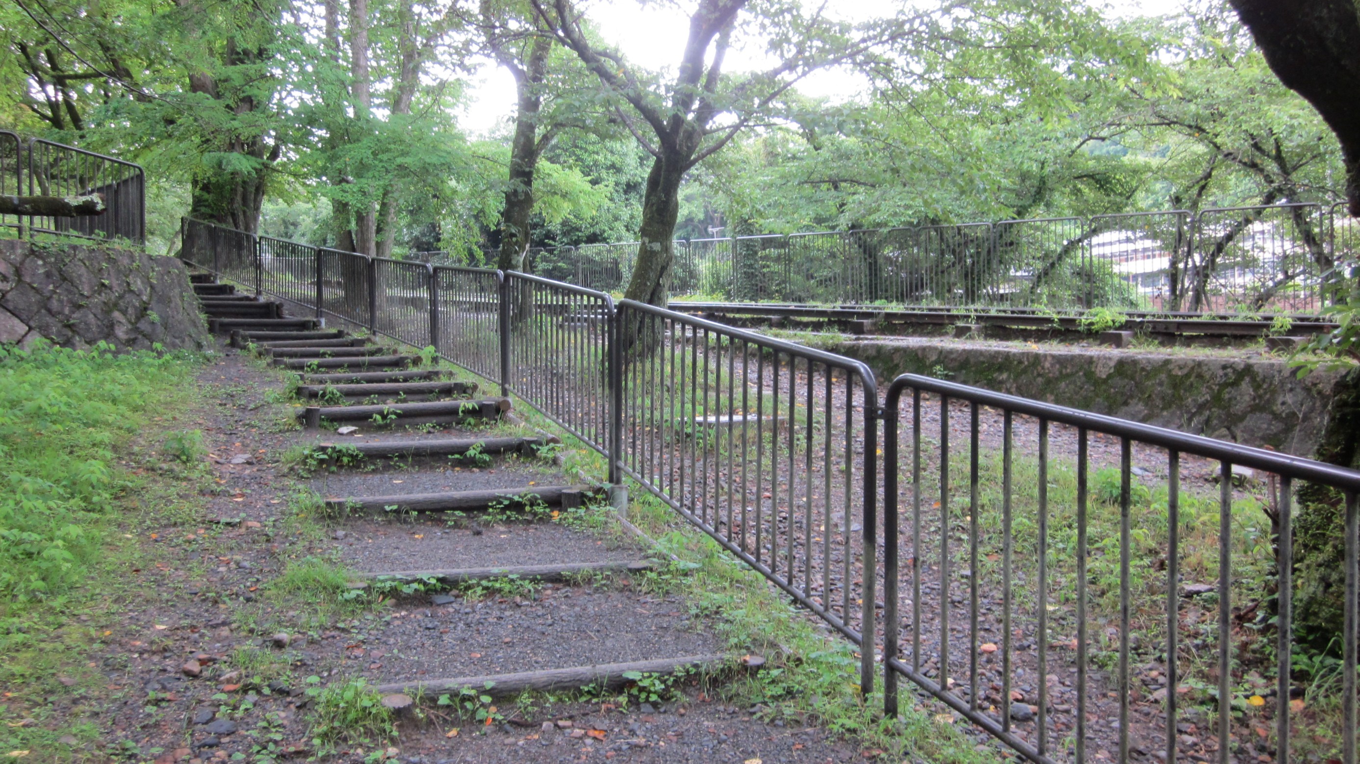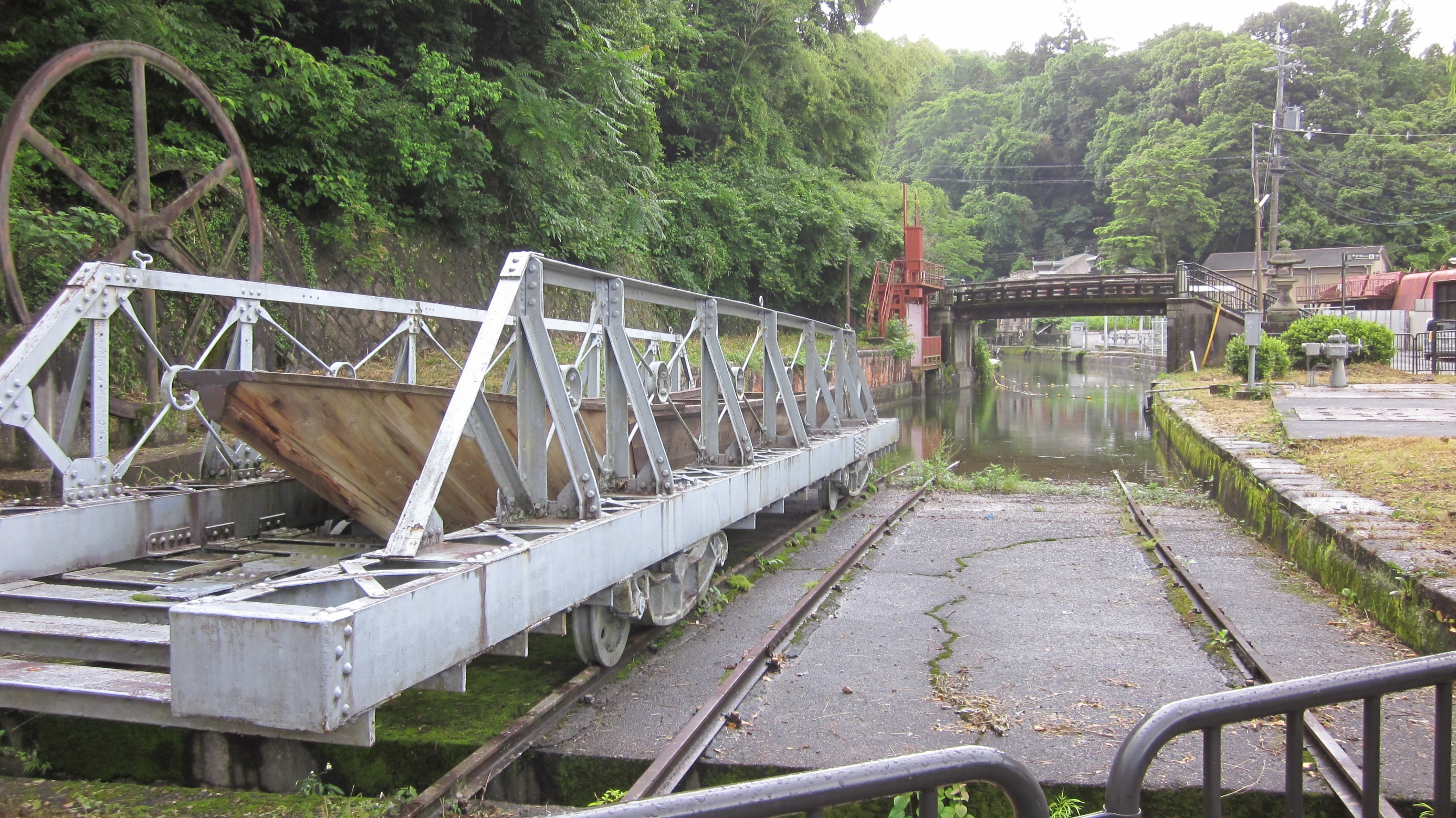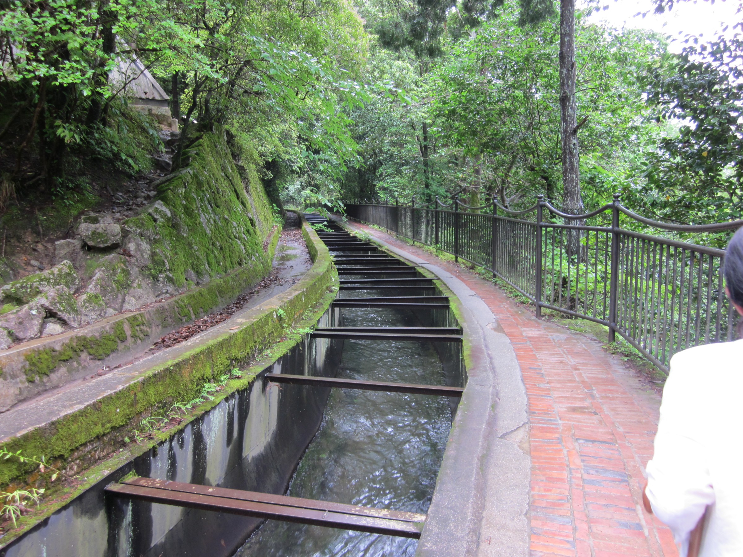 水路閣の西側に階段があるので、登っていくと水路閣の上にたどり着きます、琵琶湖の水をトンネルをくり抜いて引いた水路で、東に向かっていますが銀閣寺にたどり着き「哲学の小道」に流れるせせらぎとなり、西に歩くと日本初の発電所とインクラインが見えてきます。このあたりになると、観光客も少なく深緑を満喫できます。