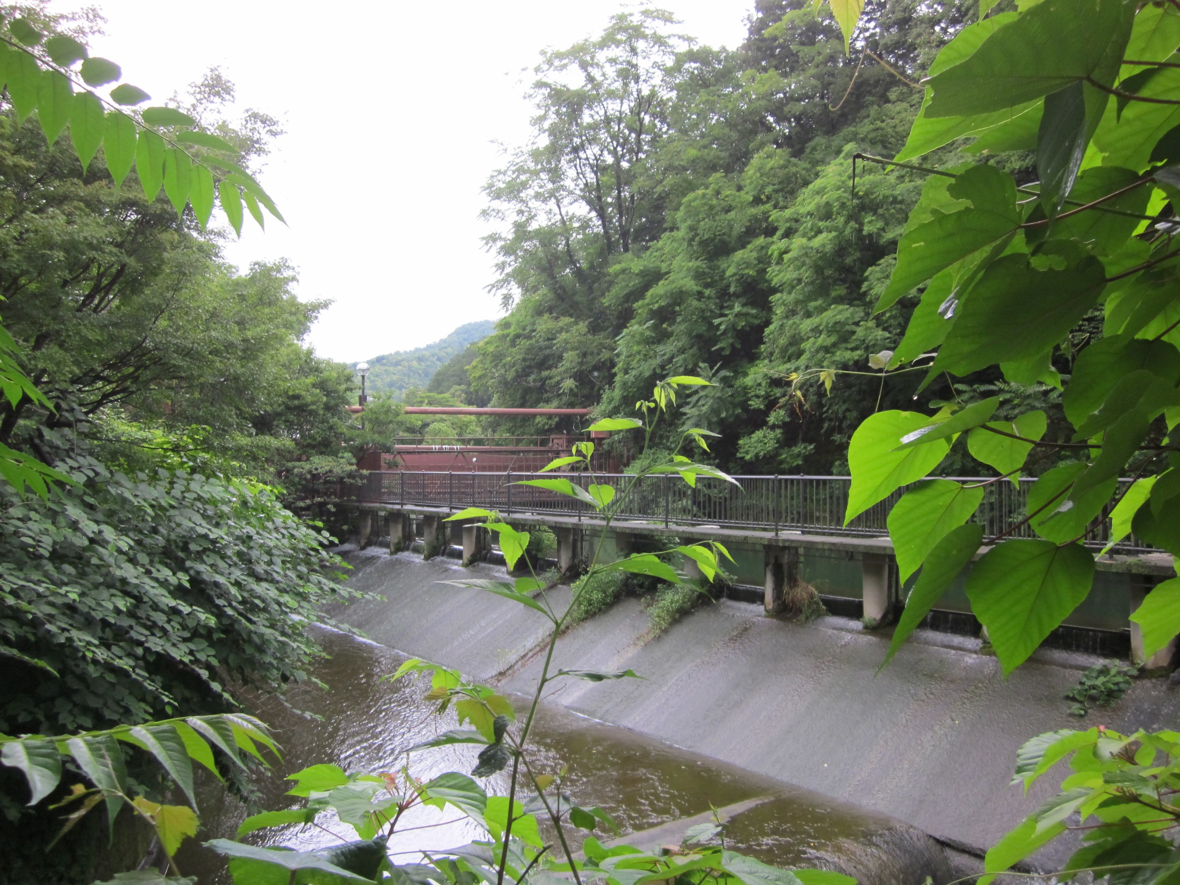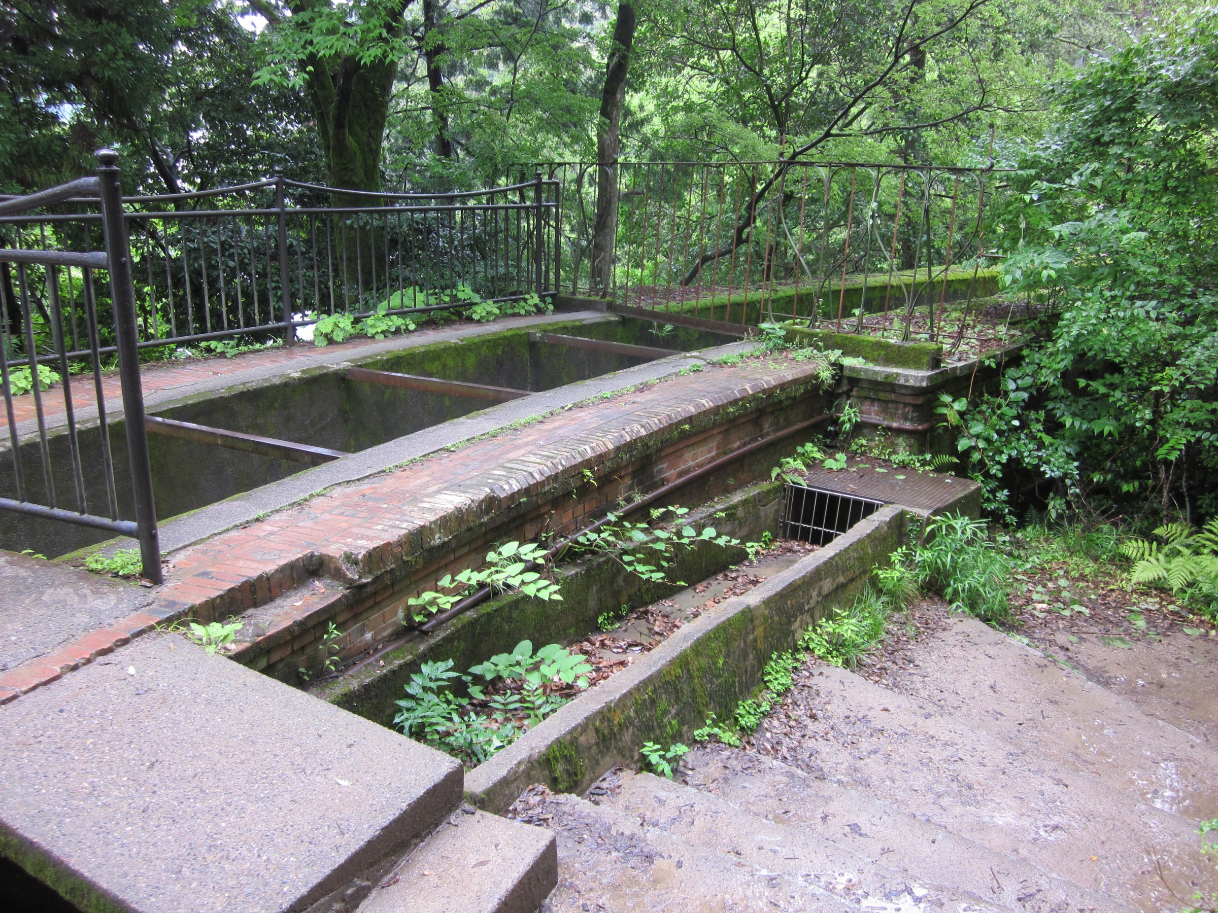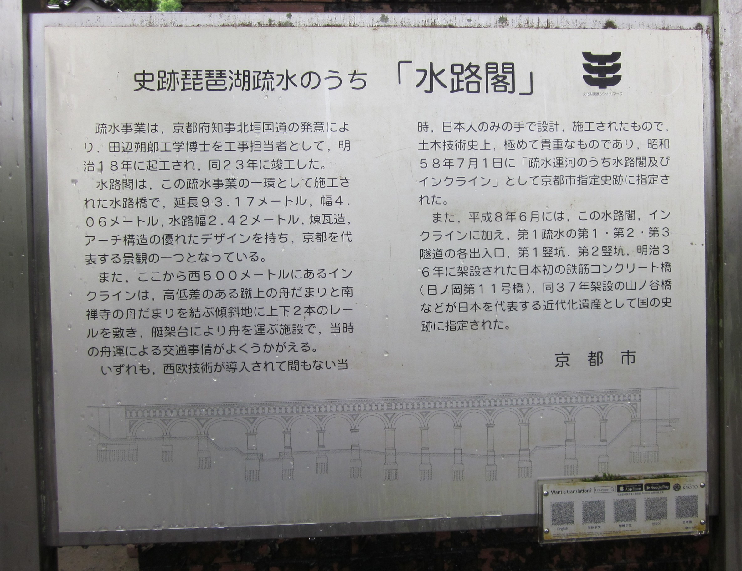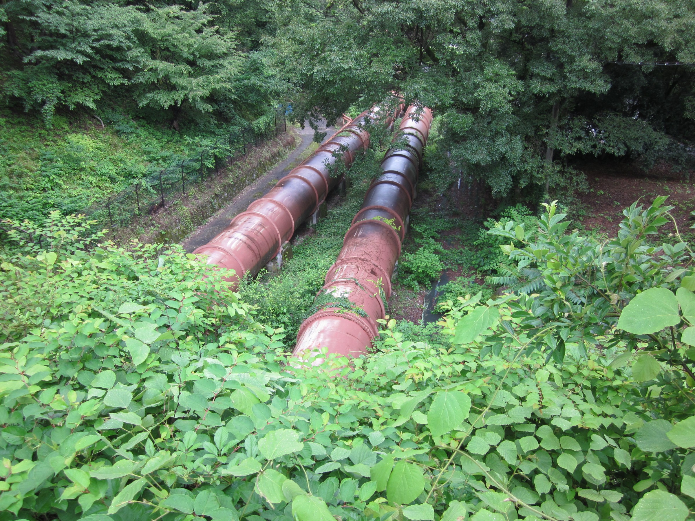 水路閣の西側に階段があるので、登っていくと水路閣の上にたどり着きます、琵琶湖の水をトンネルをくり抜いて引いた水路で、東に向かっていますが銀閣寺にたどり着き「哲学の小道」に流れるせせらぎとなり、西に歩くと日本初の発電所とインクラインが見えてきます。このあたりになると、観光客も少なく深緑を満喫できます。
