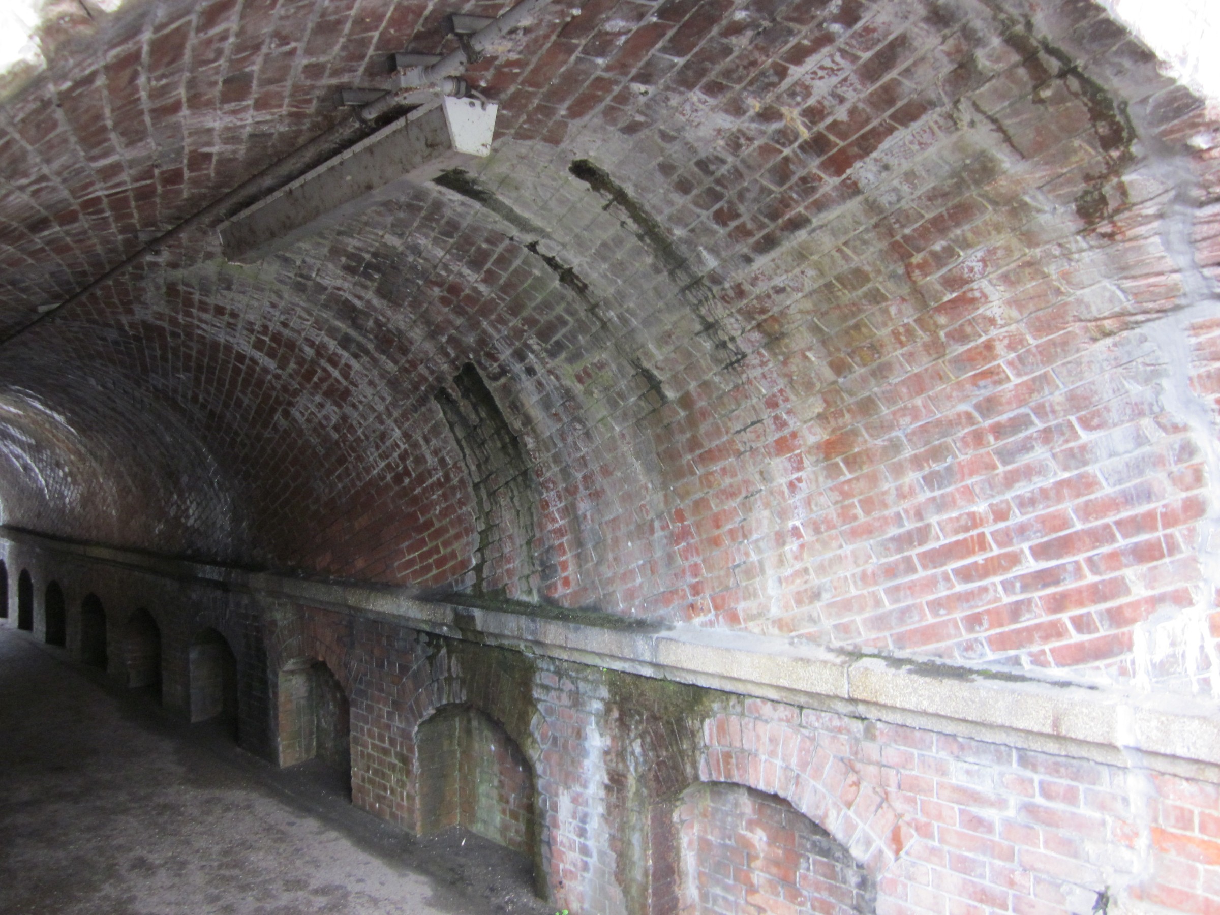 インクラインの横に階段があるので下っていくと、「ねじりマンポ」と言われている変わったトンネルがあります。明治時代に多く作られたトンネルでJR東海道線の線路の下に今でも高槻市内に数多く残っています。