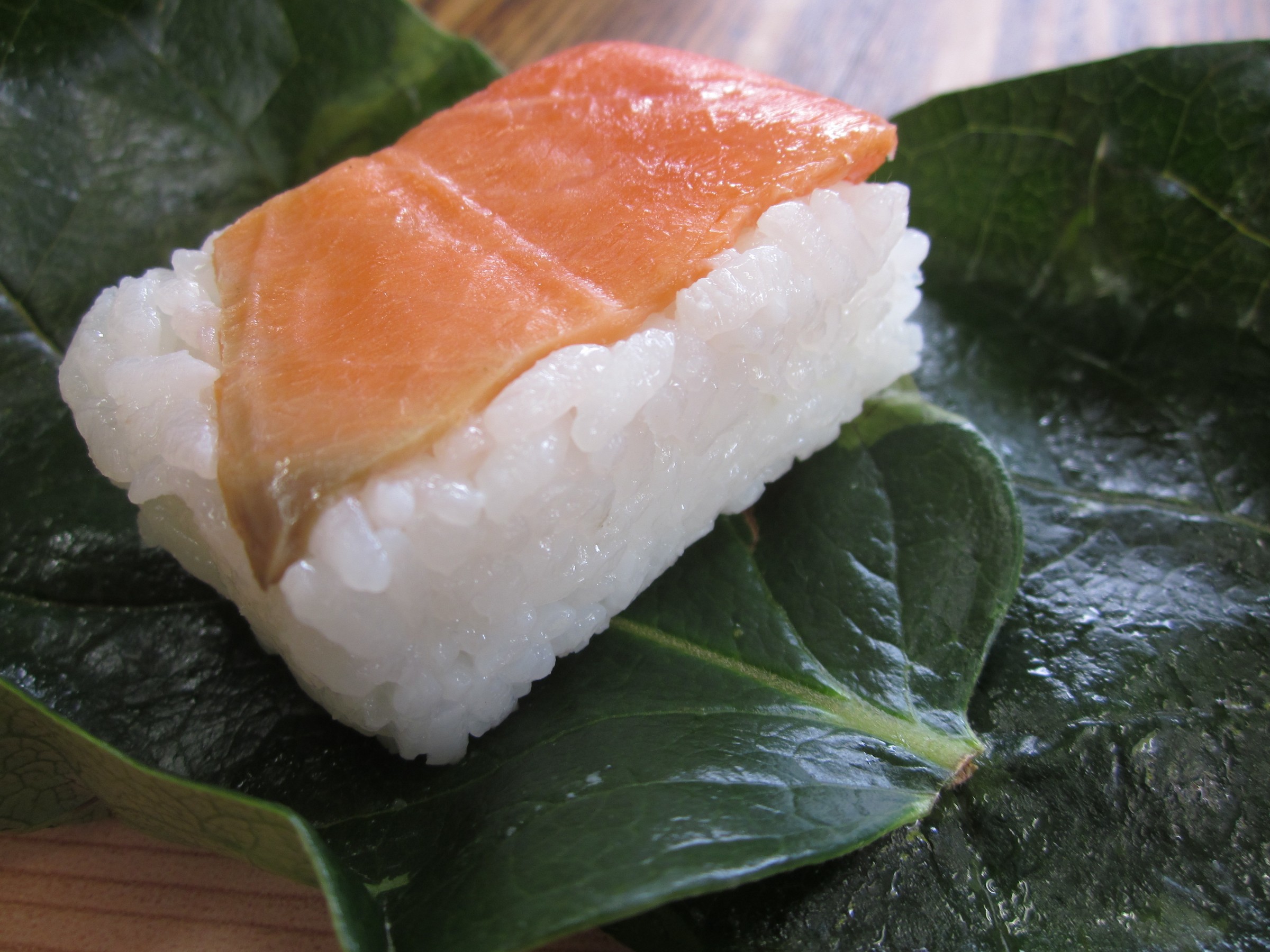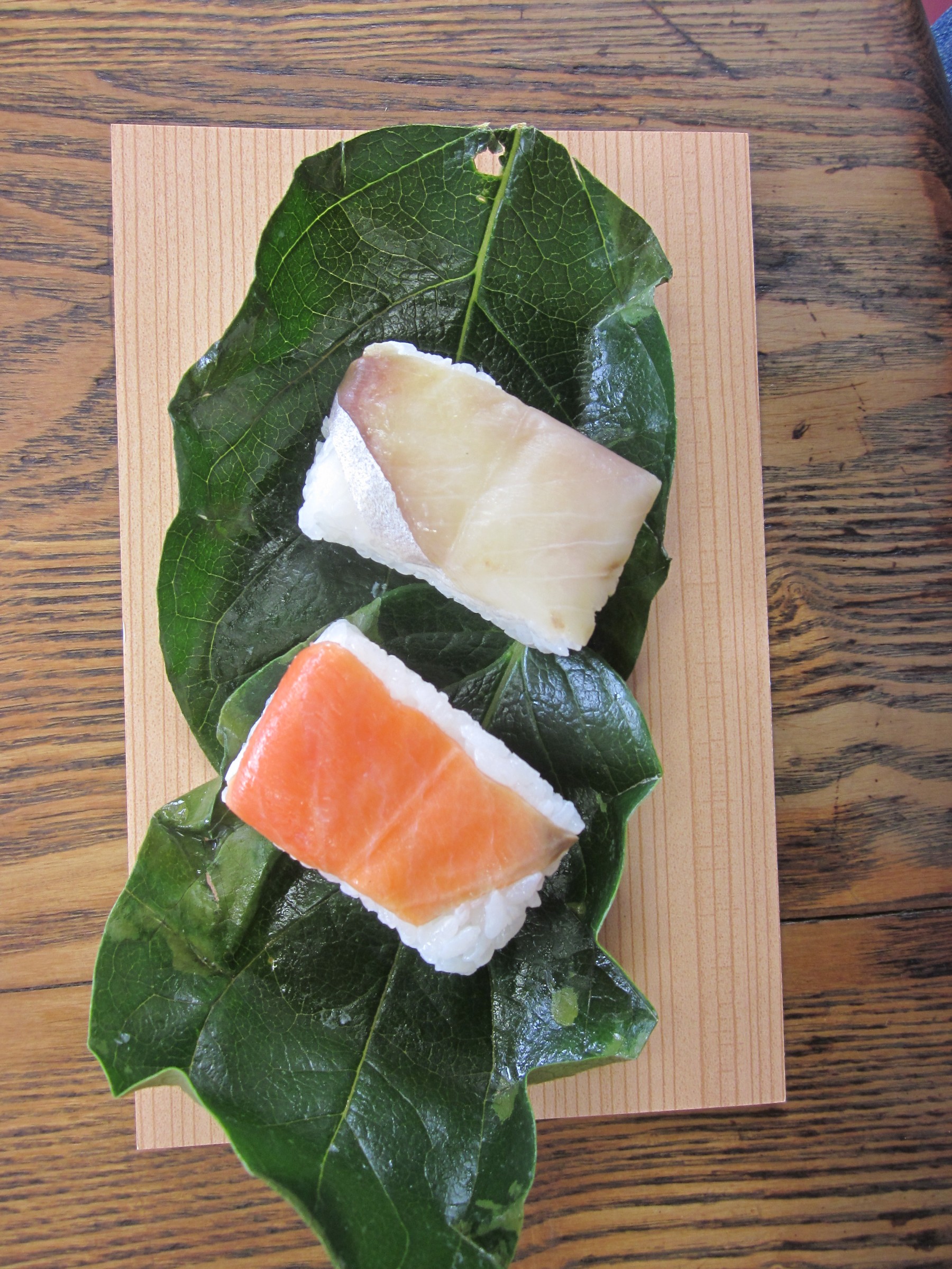 今年に出た葉っぱで包んである柿の葉寿しで、他所で売っているのとは葉が違います、
