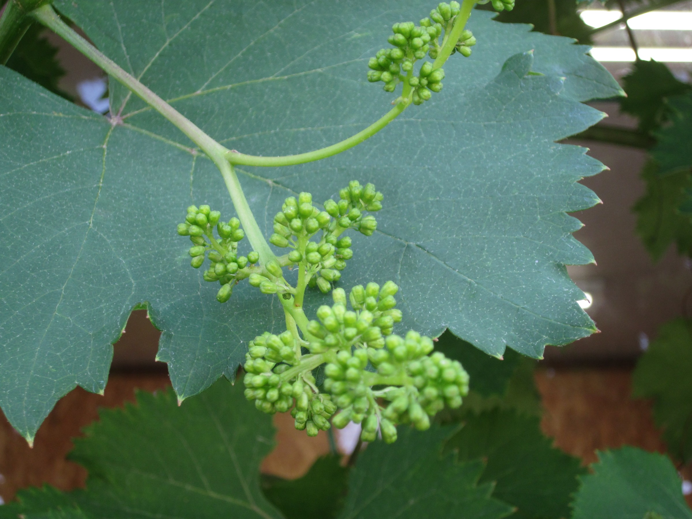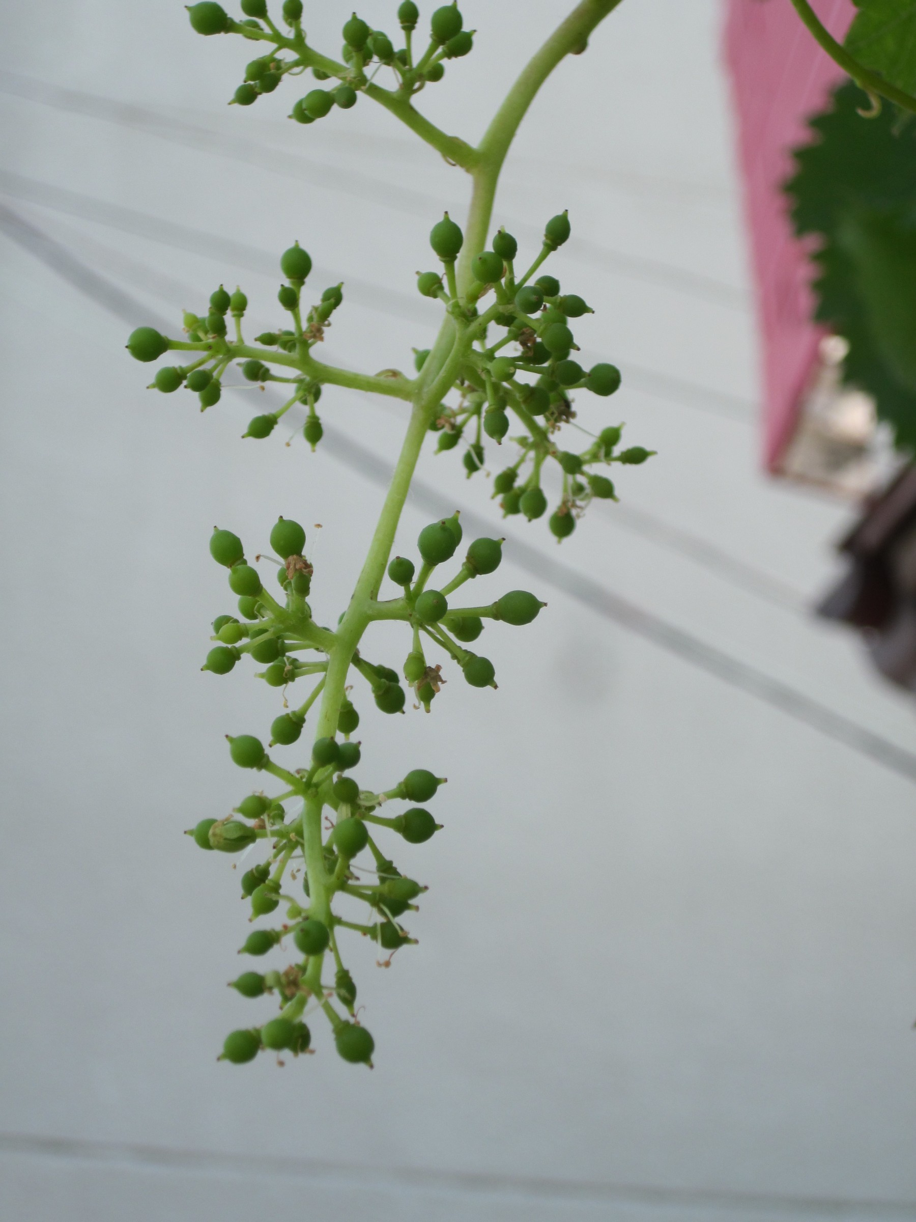 もう少しで花が咲きます、それから30粒ぐらいにカットするのです、一粒が大きく、甘くなるように、、