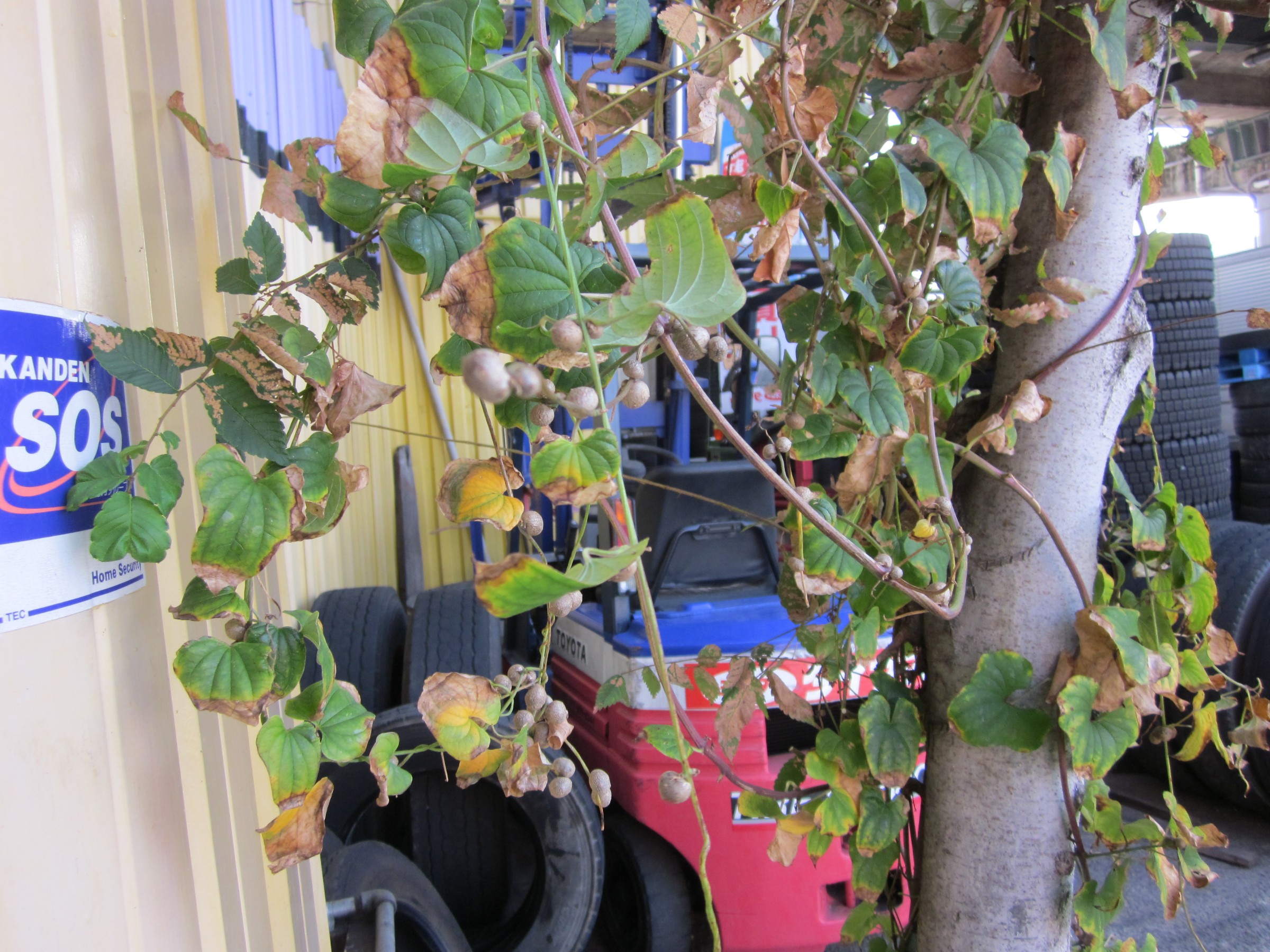 植わっている自然薯は「里」なのか「山」の芋なのか分かりませんが、たくさんのムカゴを実らせています。
