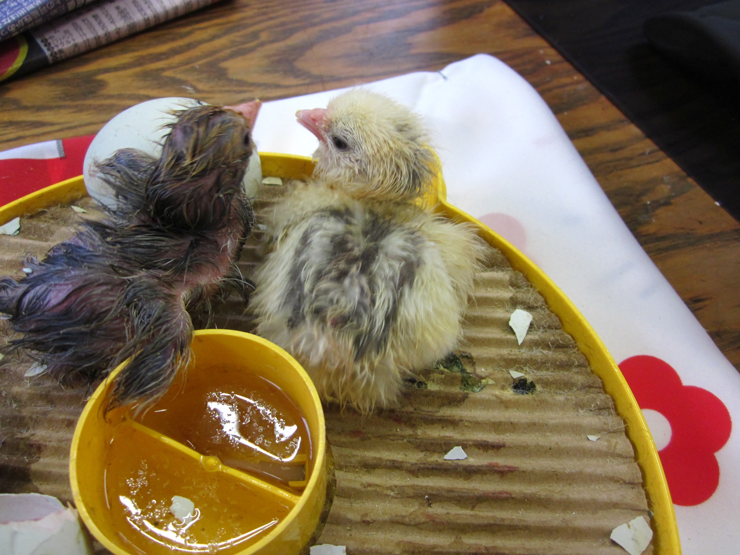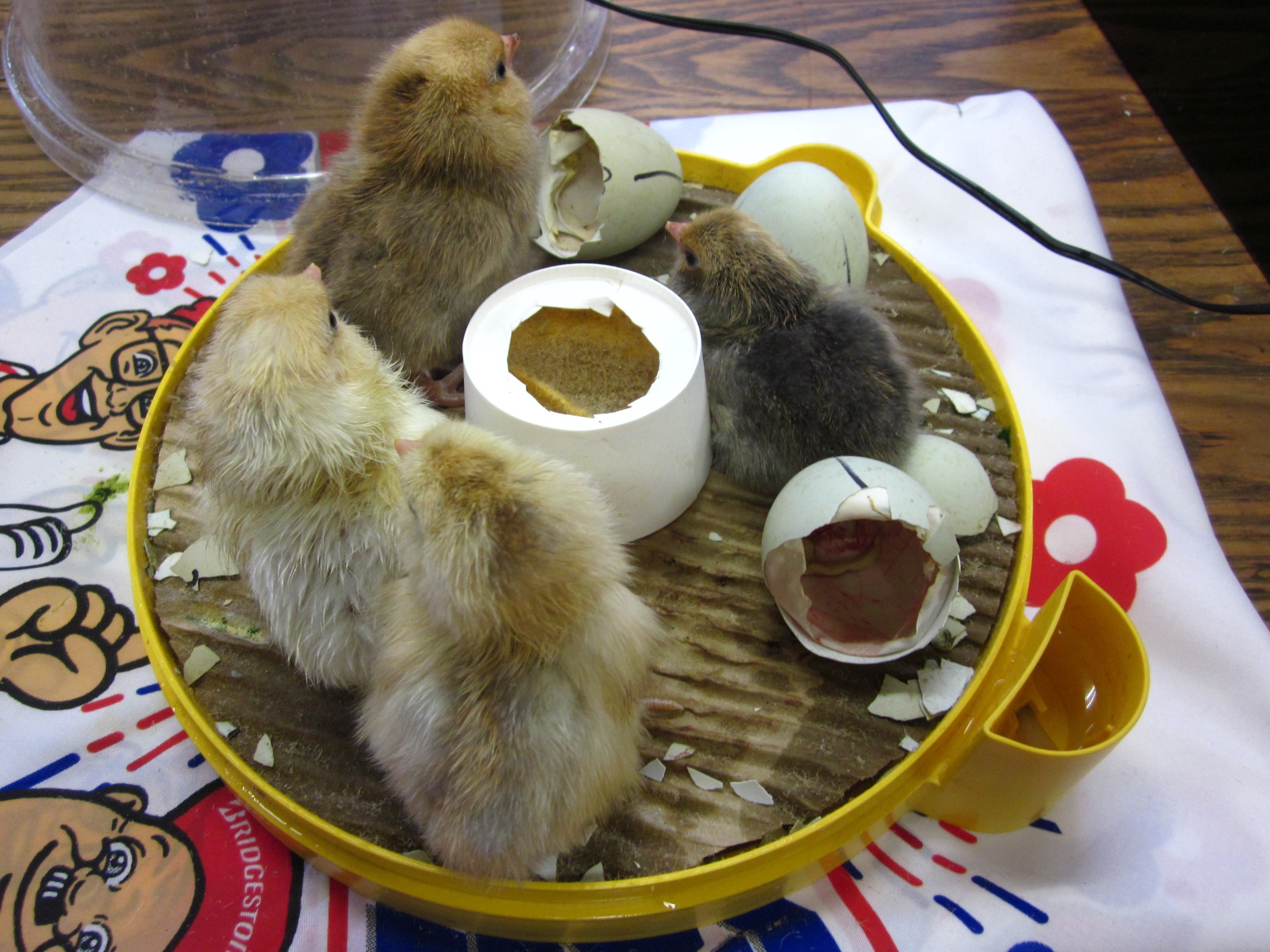 7個の「アローカナ種」の有精卵全てが孵化したのです。これまでも孵化器で孵化をさせたのですが、