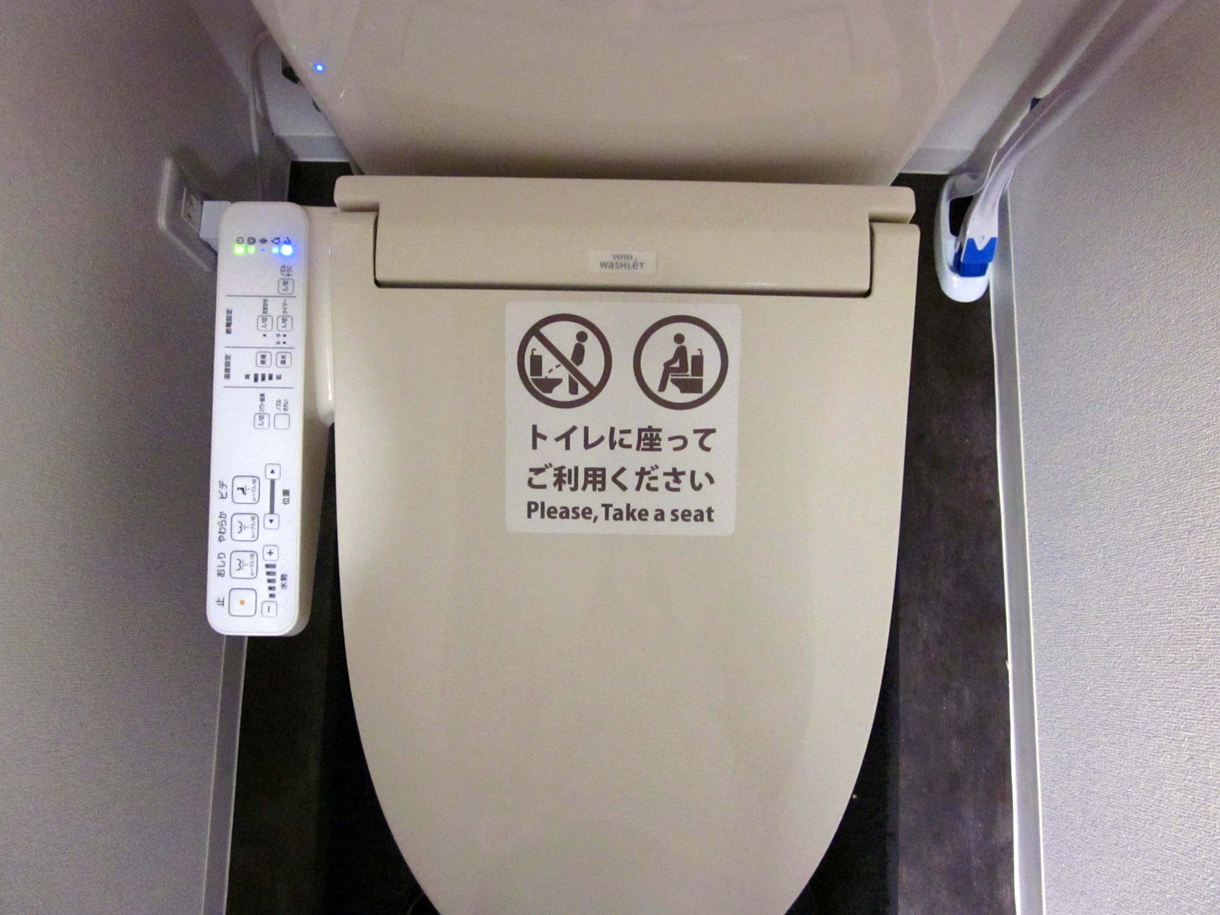 「大」も「小」も トイレに座ってご利用ください Please,Take a seat