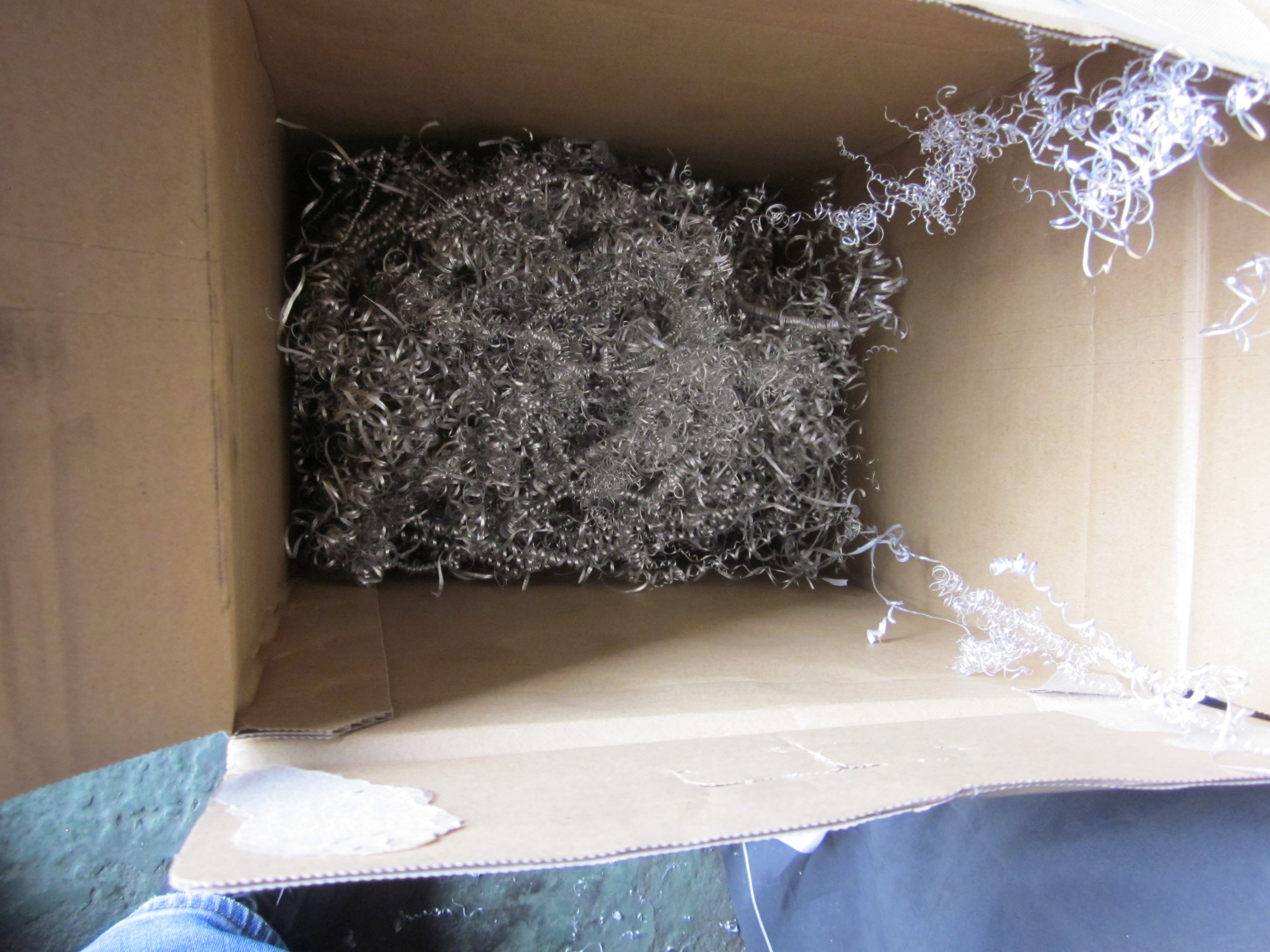 こんな小さなアルミ加工ですが、切り屑がダンボールにいっぱい溜まってしまいます。