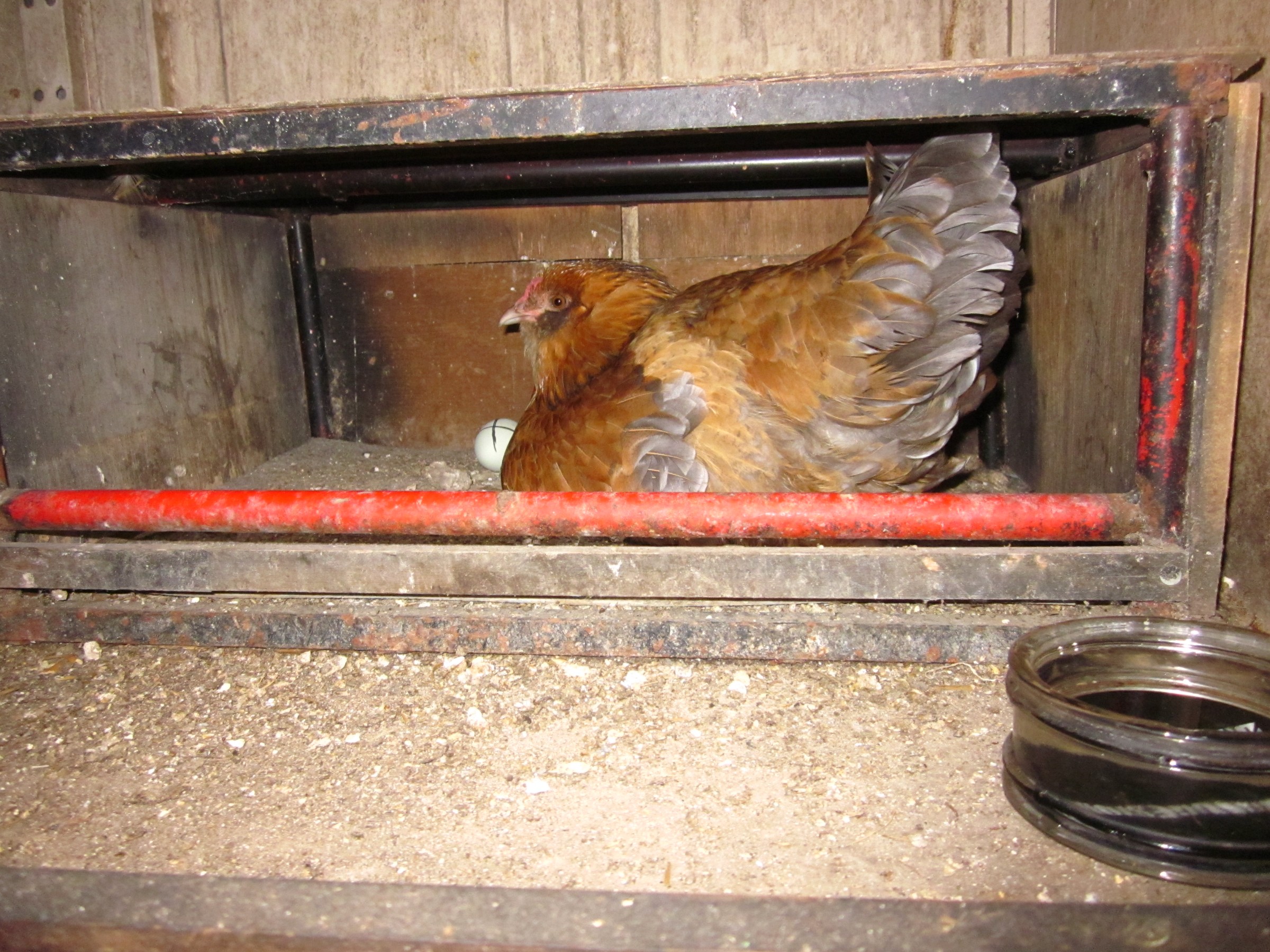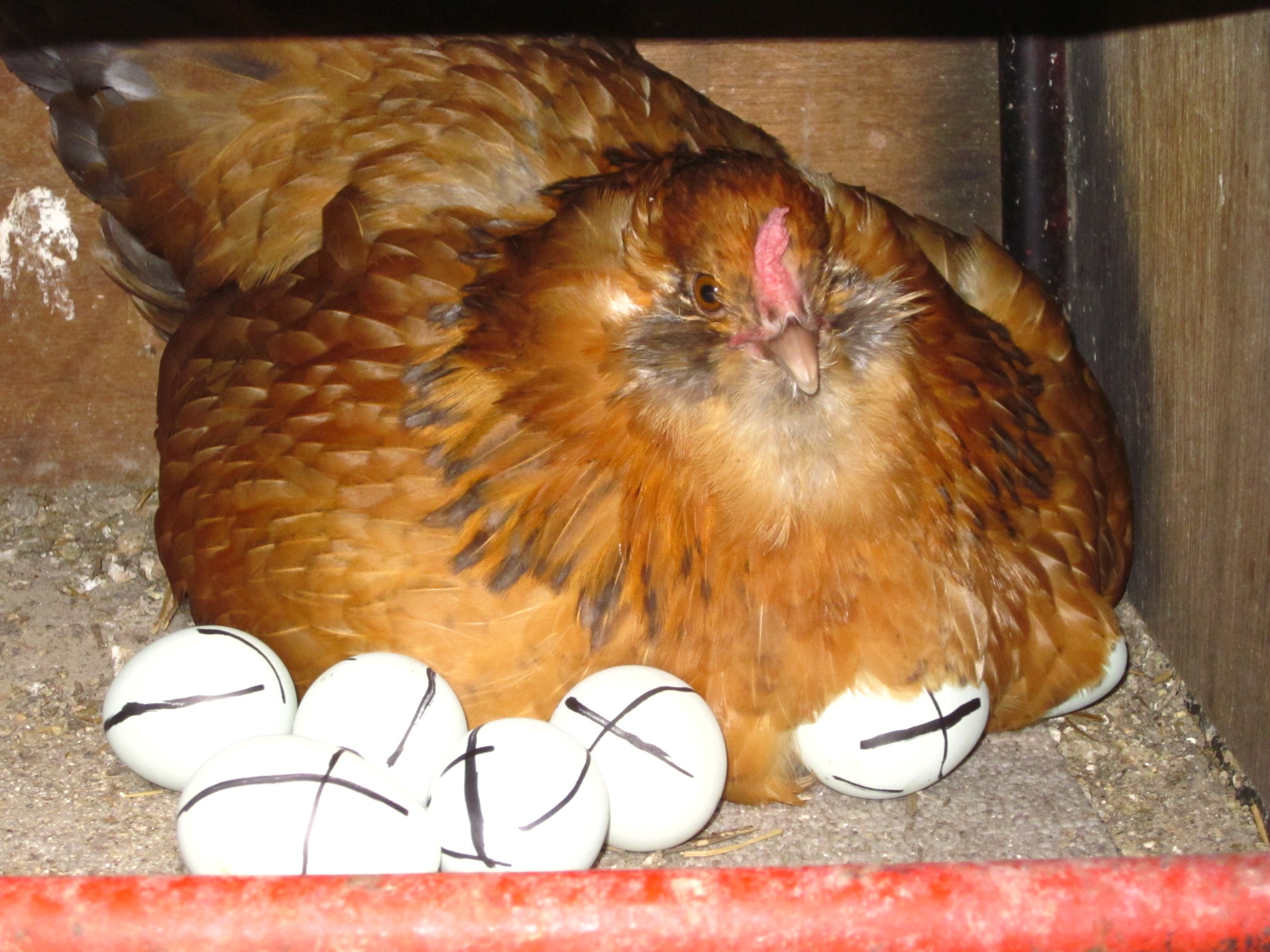 他の雌鶏が生んだ卵を取り出す時、抱いている雌鶏が羽の懐で温めてしまっていますので、区別して