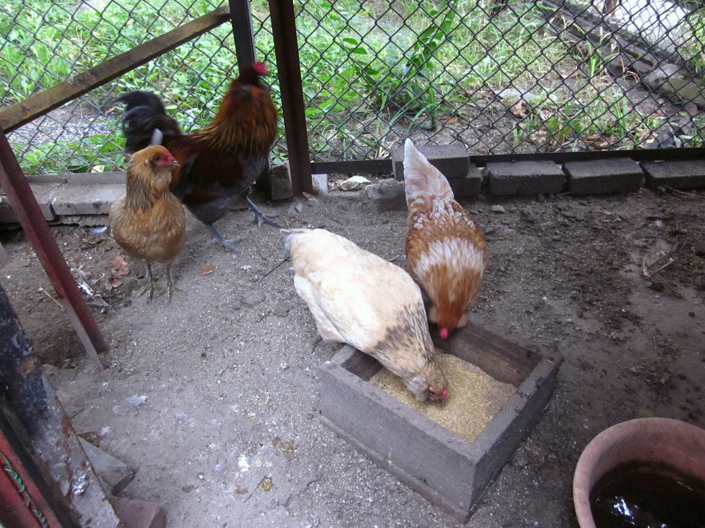 おれ達お父さんの店「ミスタータイヤマン高槻」で飼っているアローカナの雌鶏が