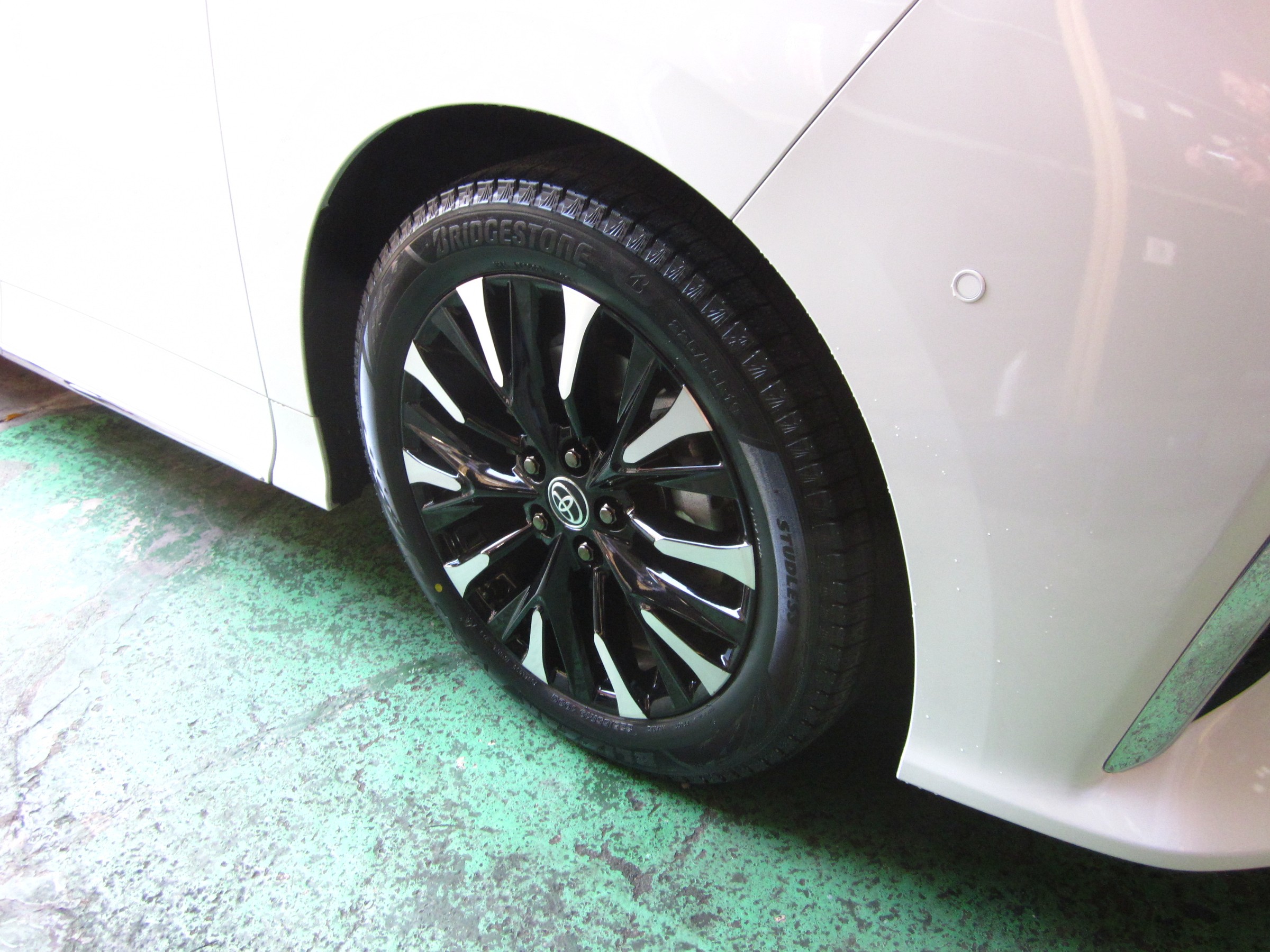 望ましいのですが、お客さんの希望で純正ホイールでの取り付けになりました。