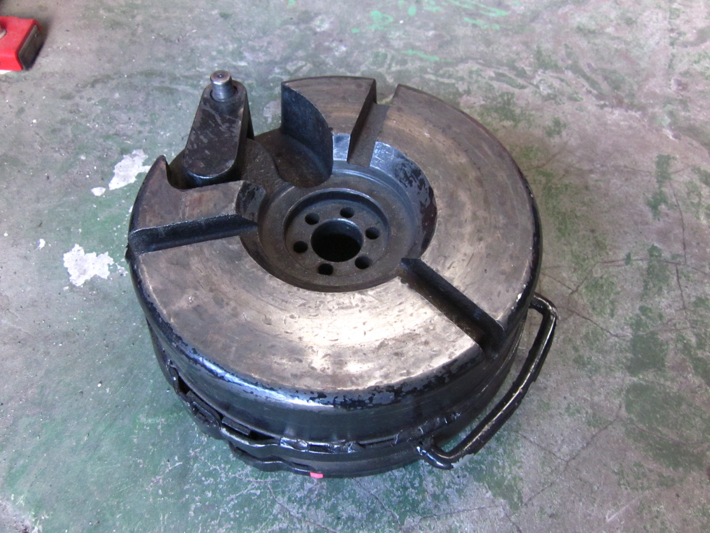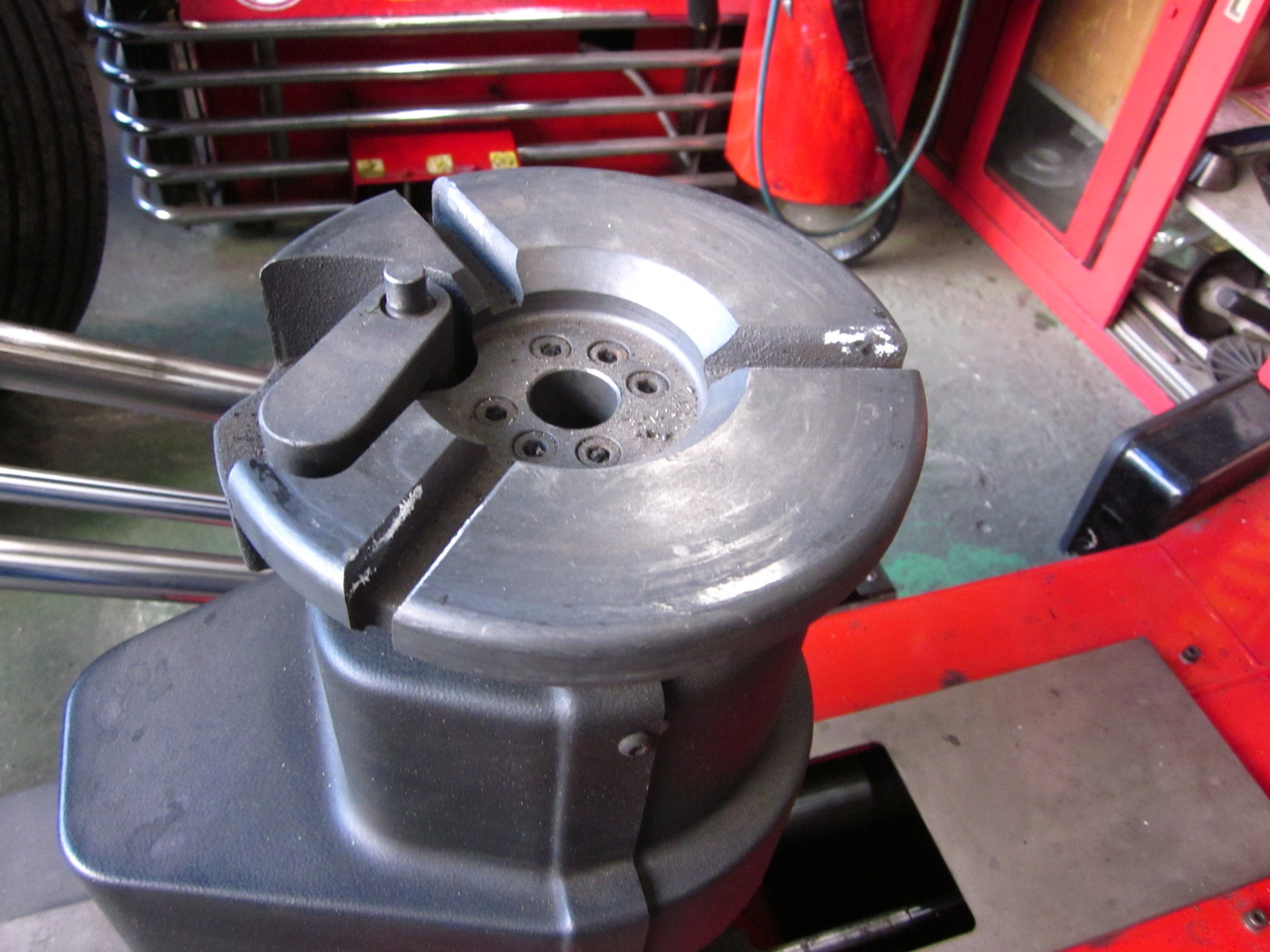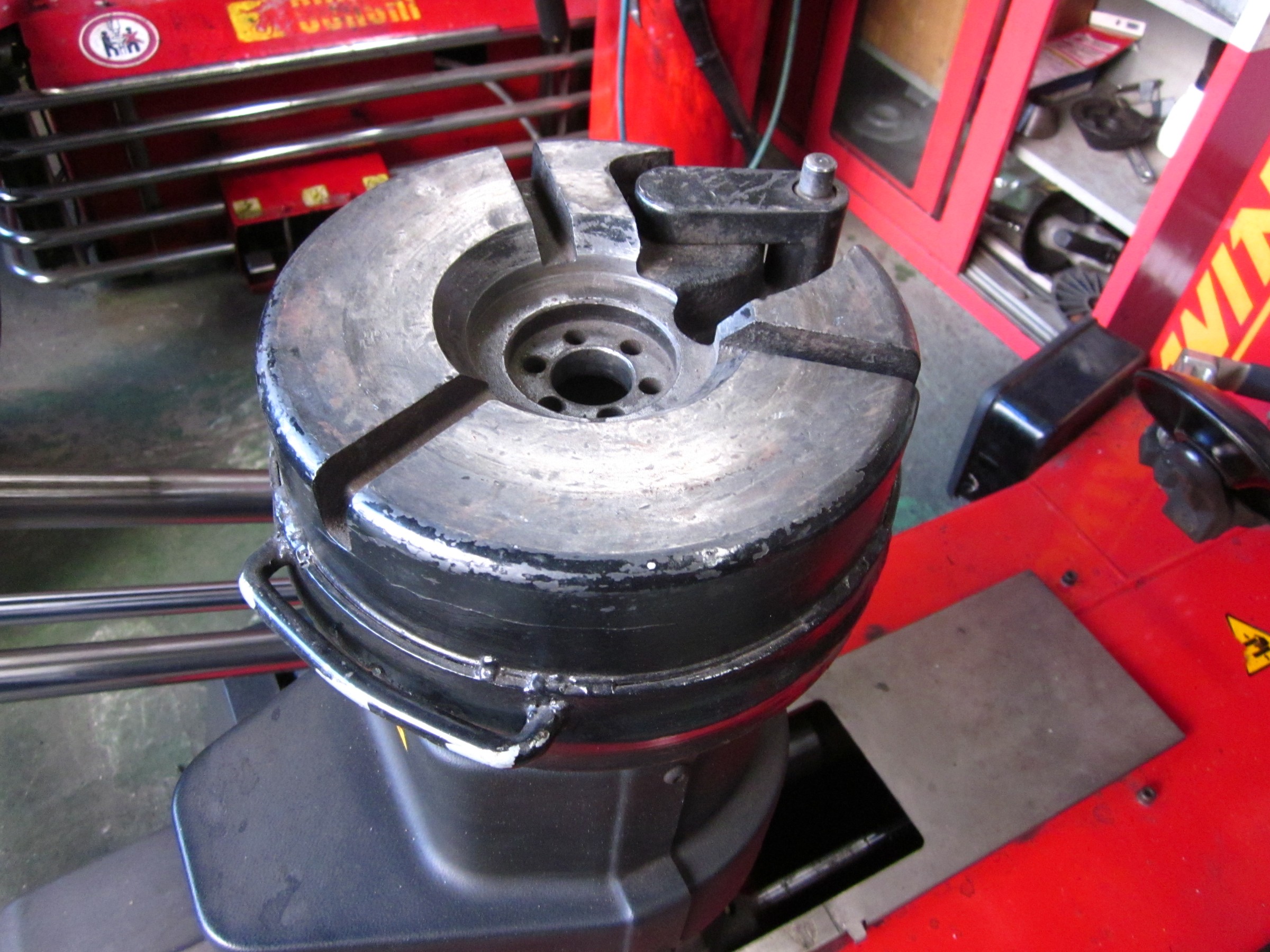 エイワ「トルネード」タイヤチェンジャーは、センターロック方式で油圧方式なので、少々外れにくい