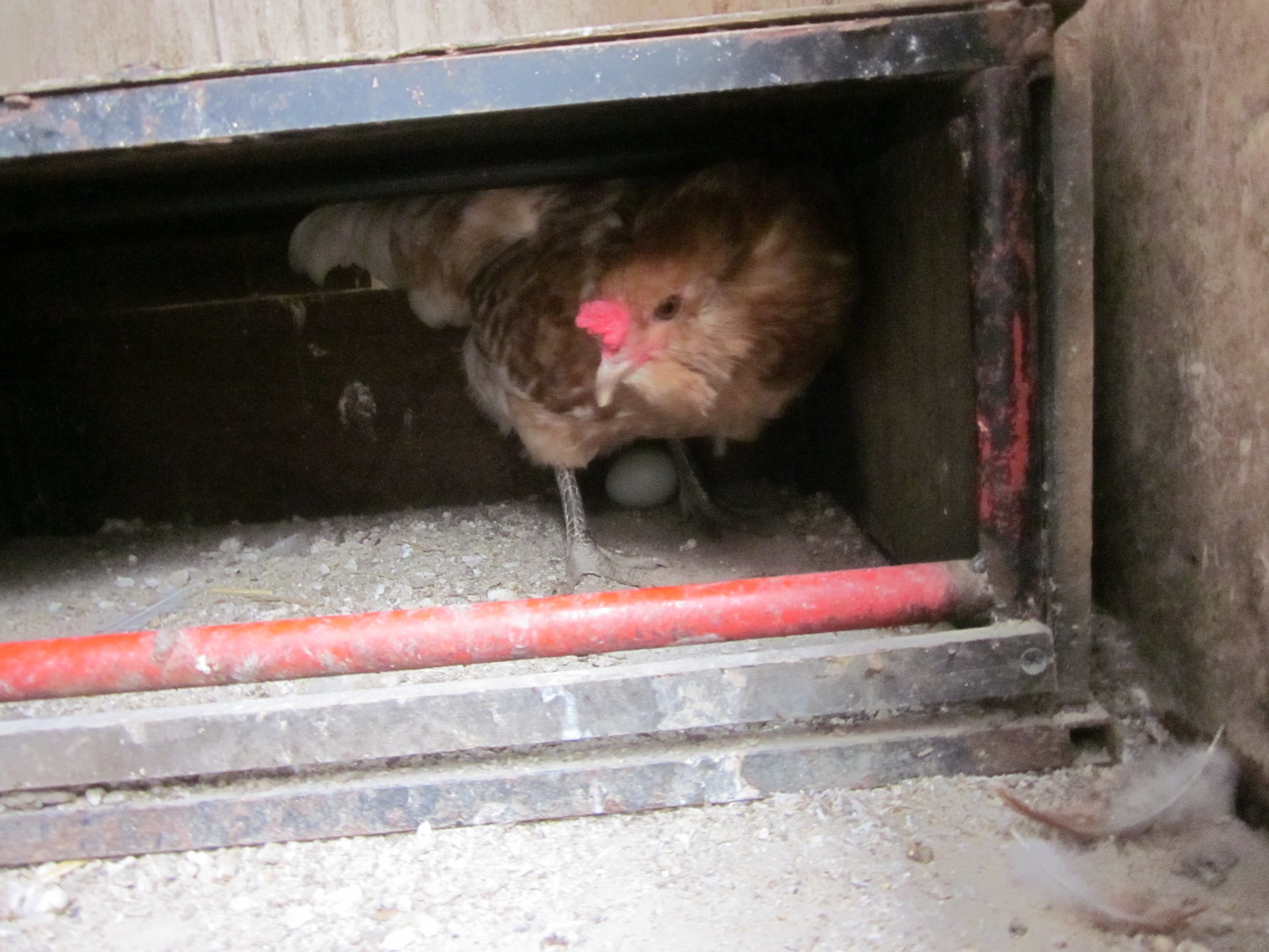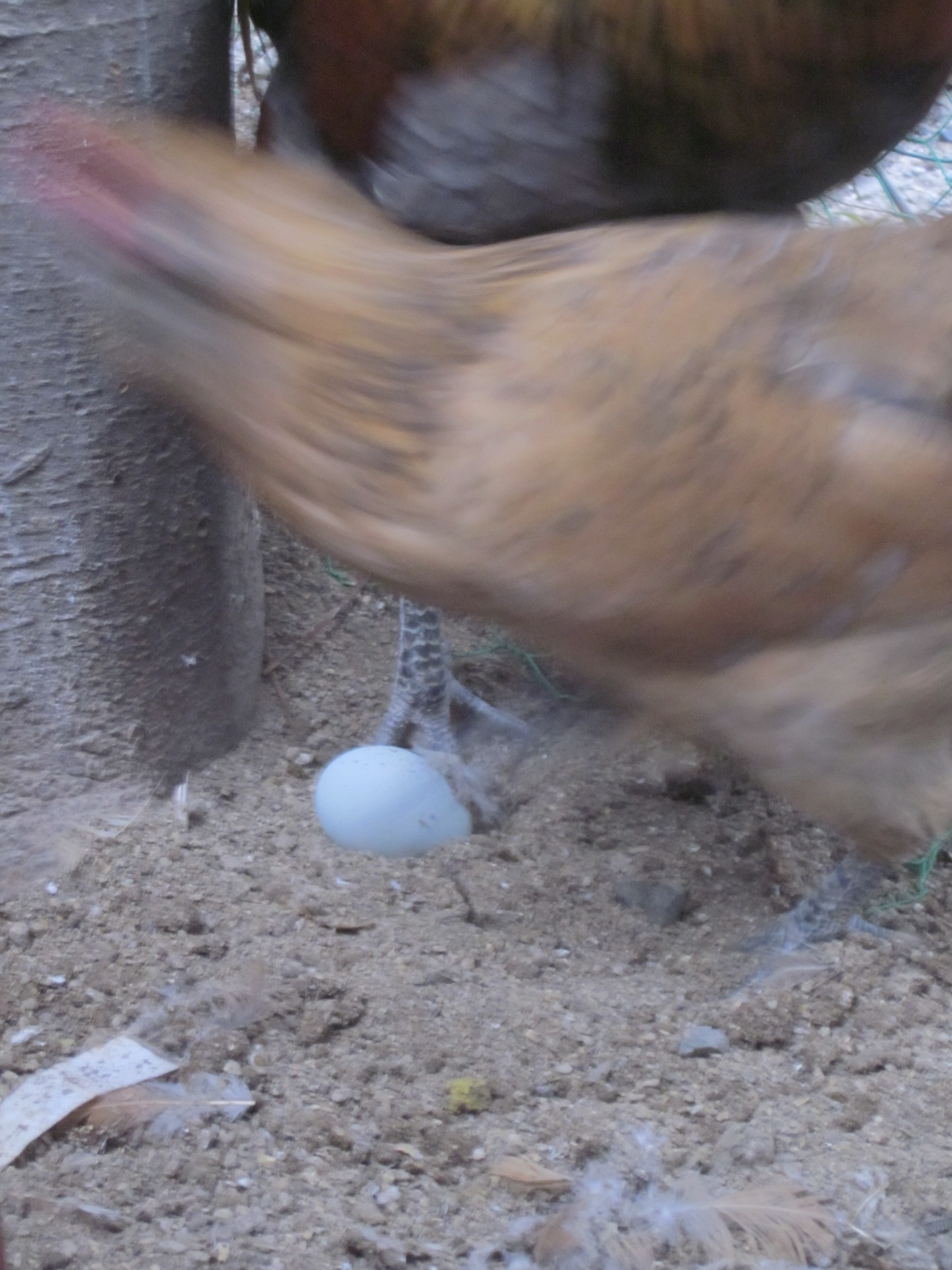 地べたに産む雌鶏もいます、 巣箱で産めばいいのに、 躾を厳しくしなくてはいかないかもね、