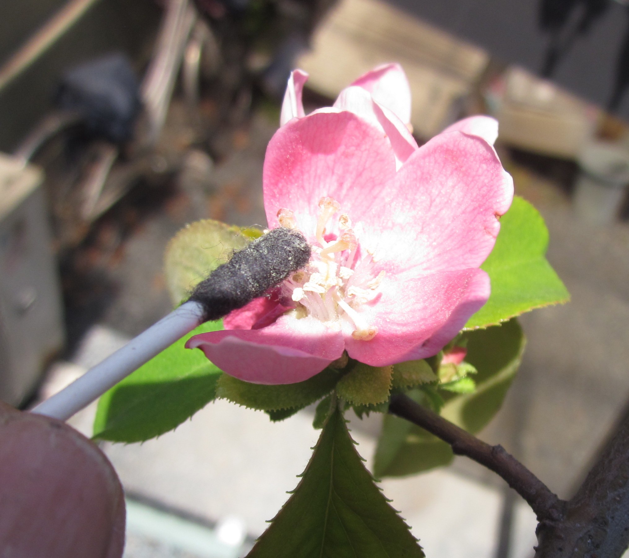 ついでに、もう少し待って、姫リンゴも人工授粉させてみます。↓