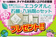 「エコタオルと石鹸、入浴剤セット」プレゼントいたします。