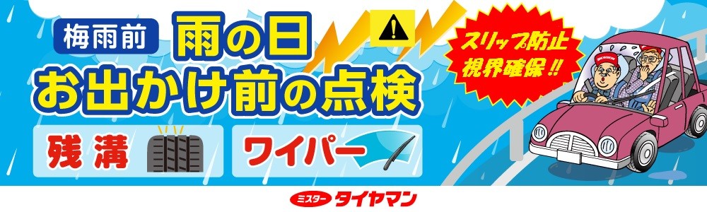 (歩行者や自転車も傘をさして車が見えにくい状況となります)ので、お車の運転前にタイヤの残り溝と