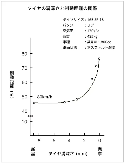 タイヤの残り溝は4㎜を切ると雨の日のブレーキで止まる距離が急に伸びだしますので4㎜を切り出したら