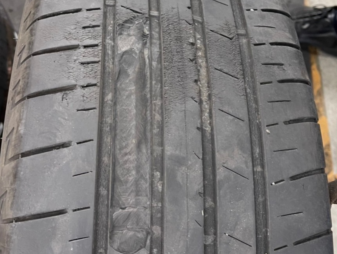 お客様のおっしゃる通りタイヤの表面が削り取られた