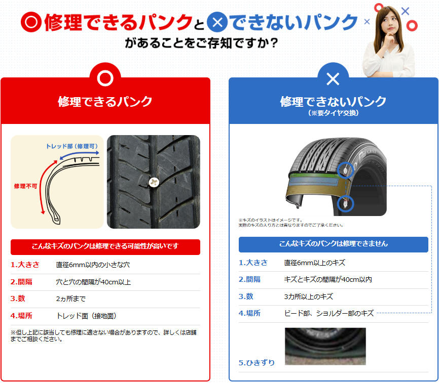 この場所はパンク修理ができない箇所になります
