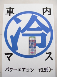 冷えます!パワーエアコン 2013年8月5日 毎日暑い日が続いていますね。車もエアコンなしでは乗れない暑さ!エアコンの効きはどうですか?エアコンガス添加剤「パワーエアコン」を入れるだけで、効きがよくなるのはもちろん、車のエンジンロスが少なくなり低燃費にも一役買います!一年に1回「パワーエアコン」添加をオススメします!