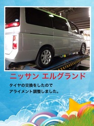 タイヤの偏摩耗が激しい為、アライメント調整しました。