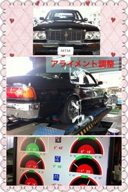 ハンドルを切った時の戻りが悪い為、アライメント調整しました。