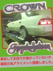 最近のアライメント調整 2012年11月29日 【FIAT 500】事故で修理した為、アライメント調整しました。【ホンダ オデッセイ】事故で修理した為、アライメント調整しました。【ベンツ E300】足回りの部品を交換した為、アライメント調整しました。【トヨタ アルファード】足回りの部品を交換した為、アライメント調整しました。【BMW 116i】事故で修理した為、アライメント調整しました。【トヨタ クラウン】事故して足回りが曲がっていないか、確認の為、アライメント調整しました。
