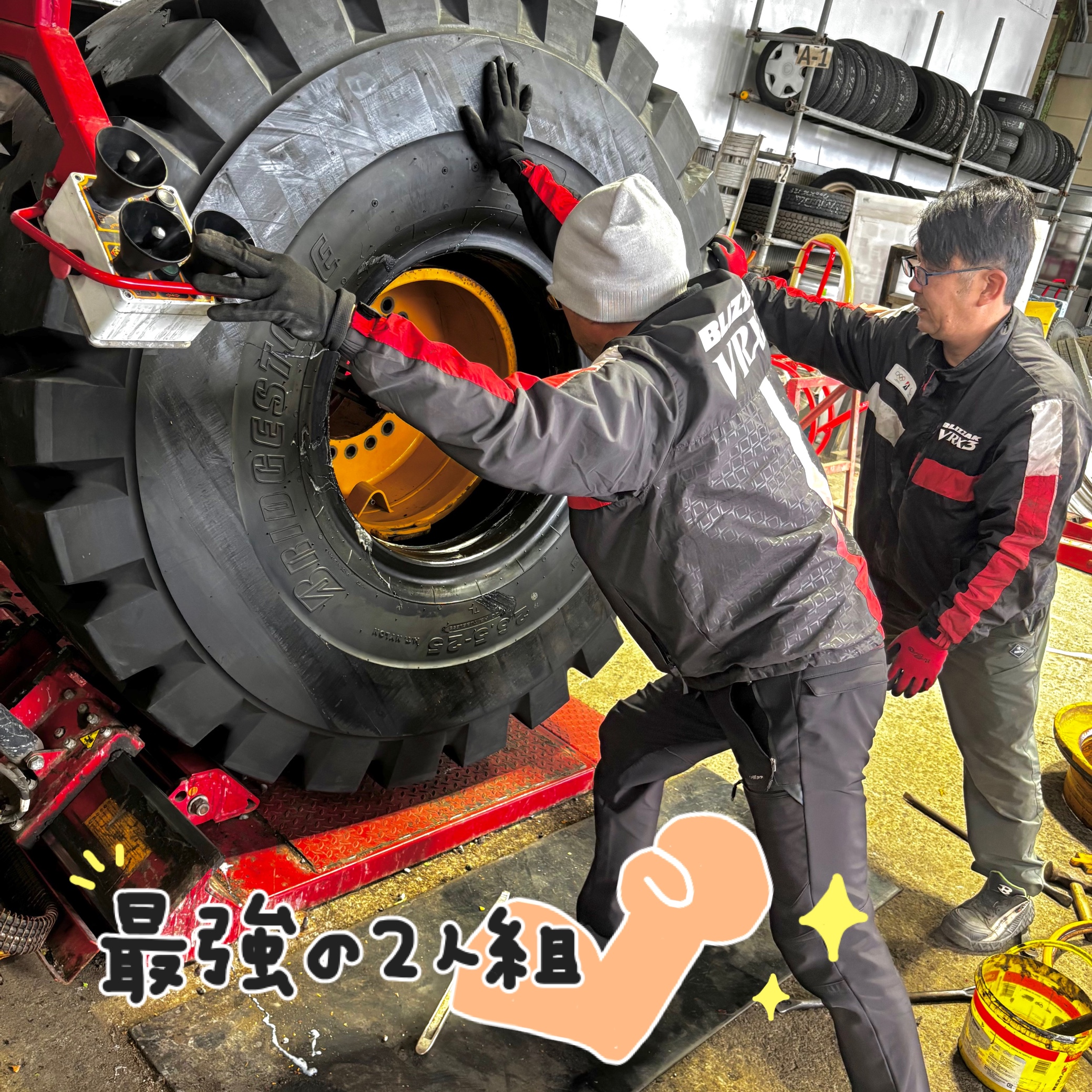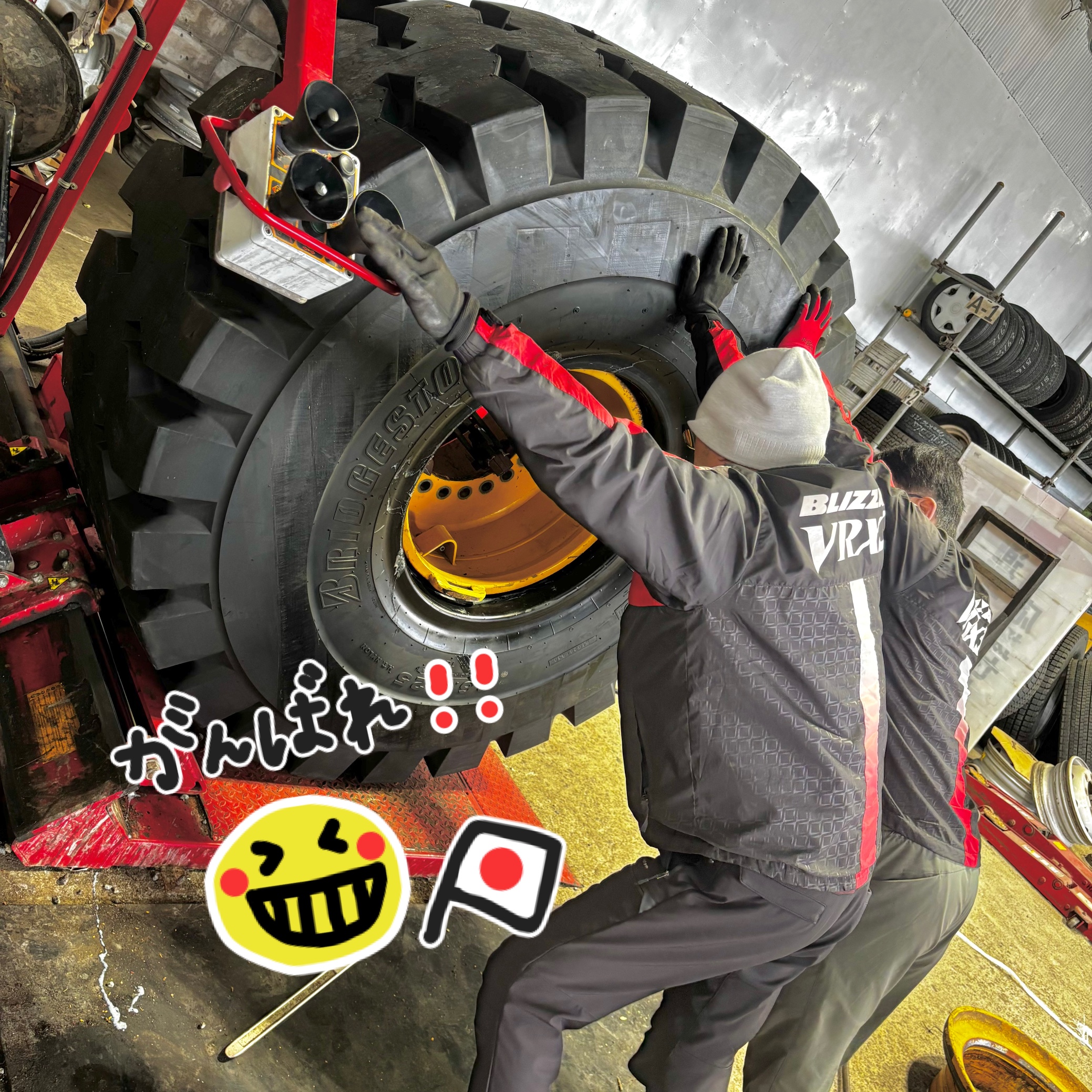 ショベルの大きいタイヤを組み替え中です⭐︎