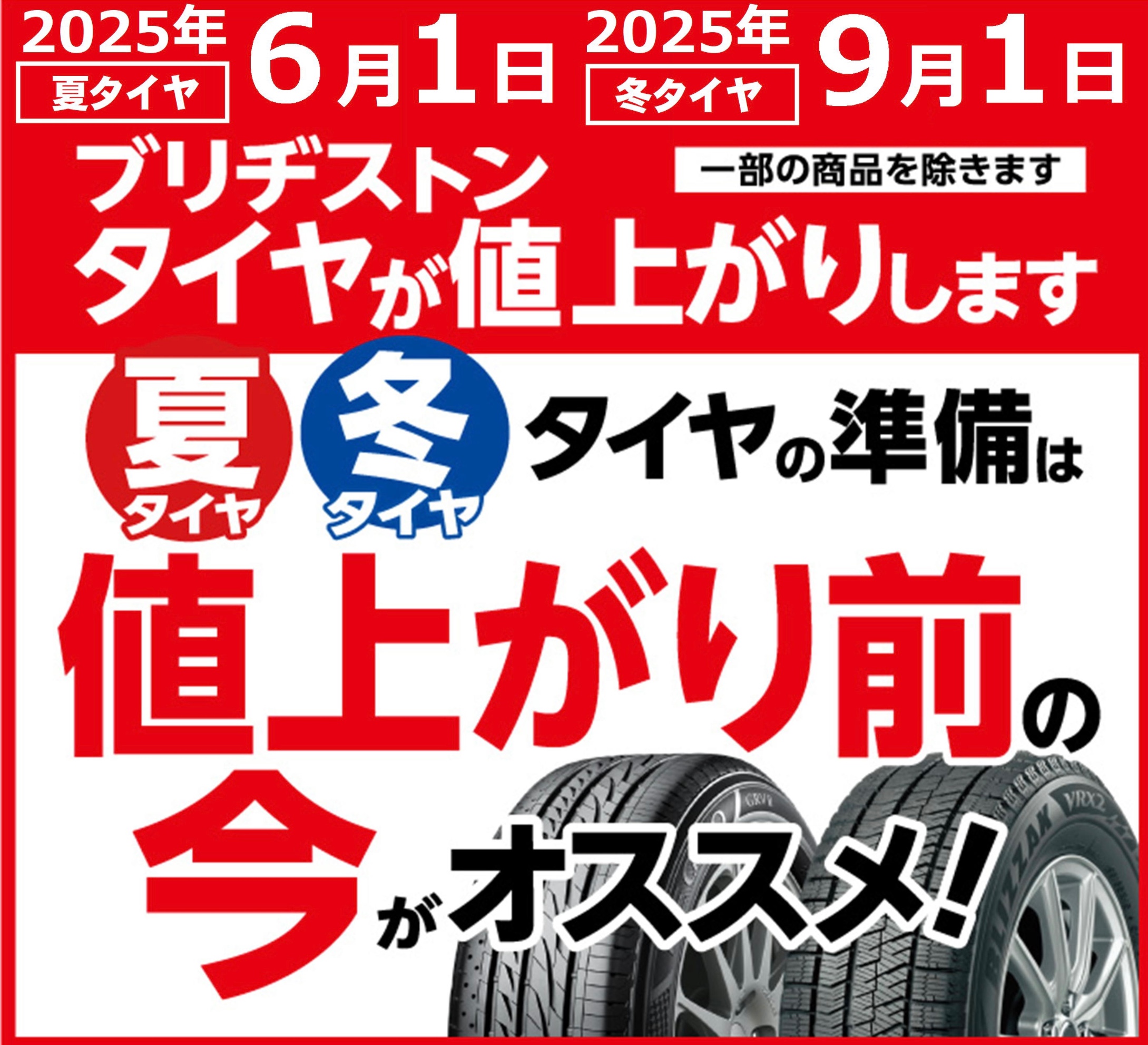 6月1日から、夏タイヤが値上がりとなります。