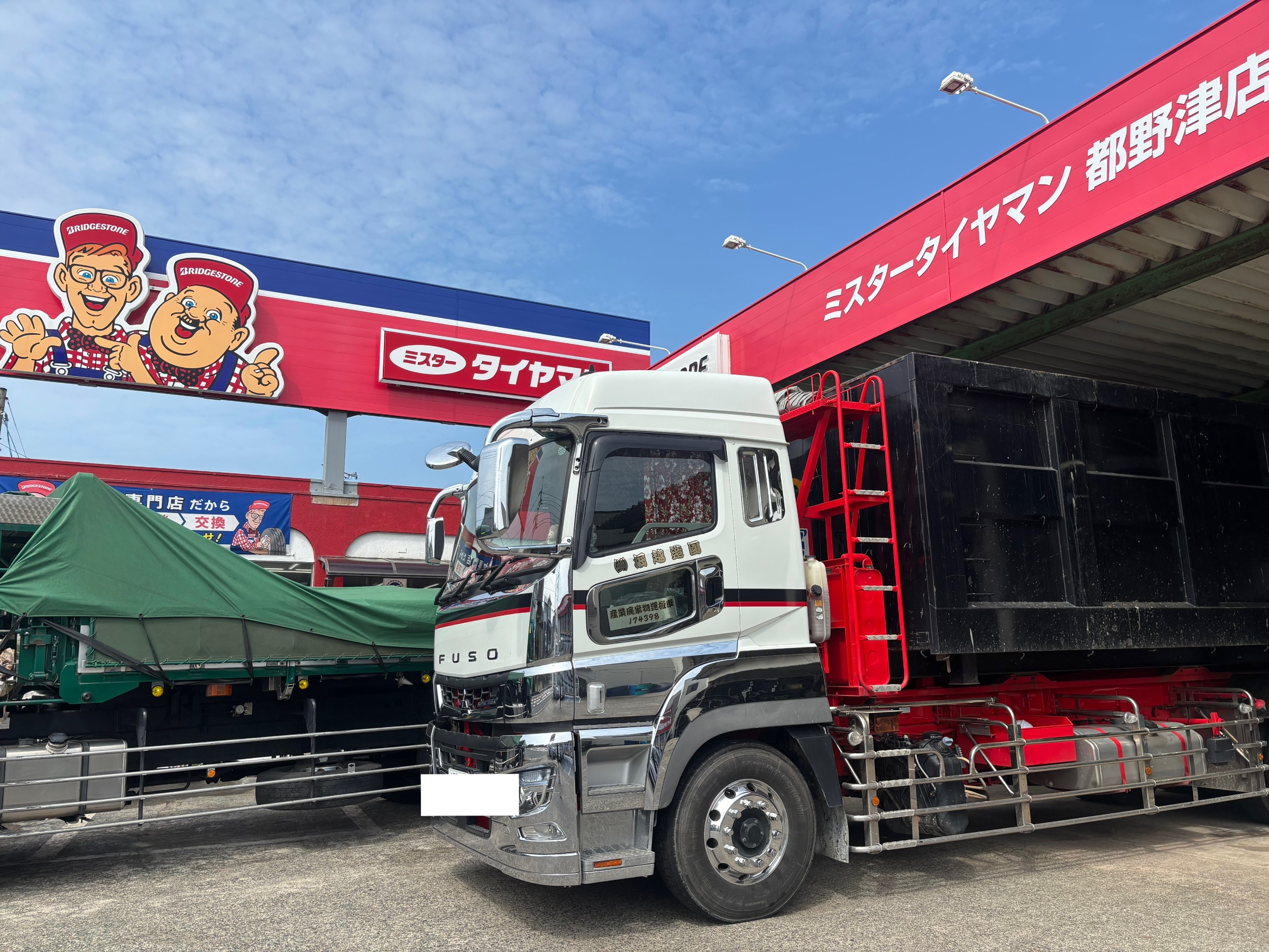 晴天の中、トラックのタイヤ交換です!
