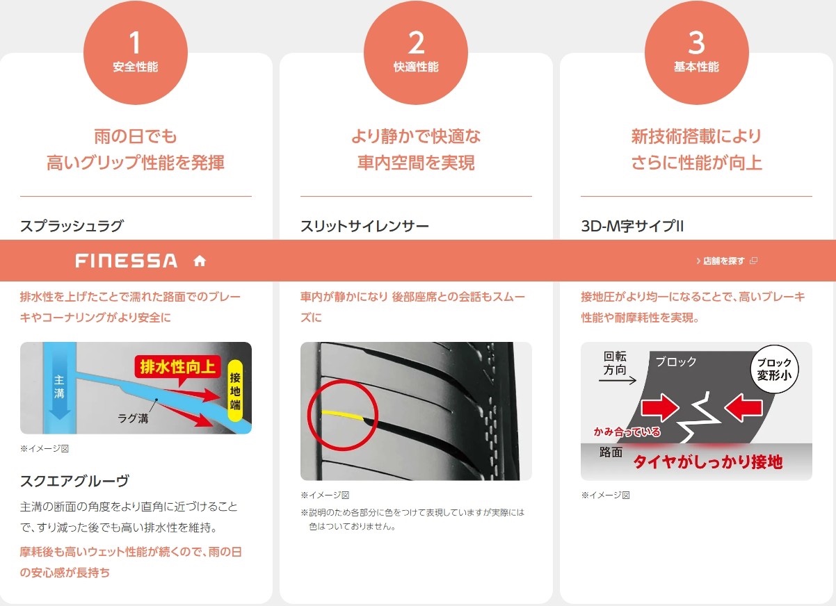 ”排水性" の高いタイヤ設計なので
