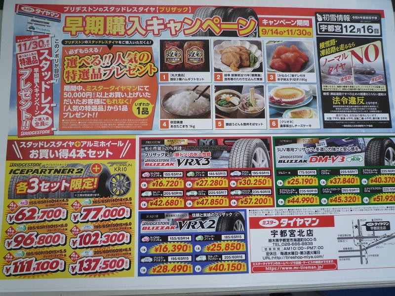 今年はブリヂストンスタッドレスタイヤ5万円以上お買い上げで