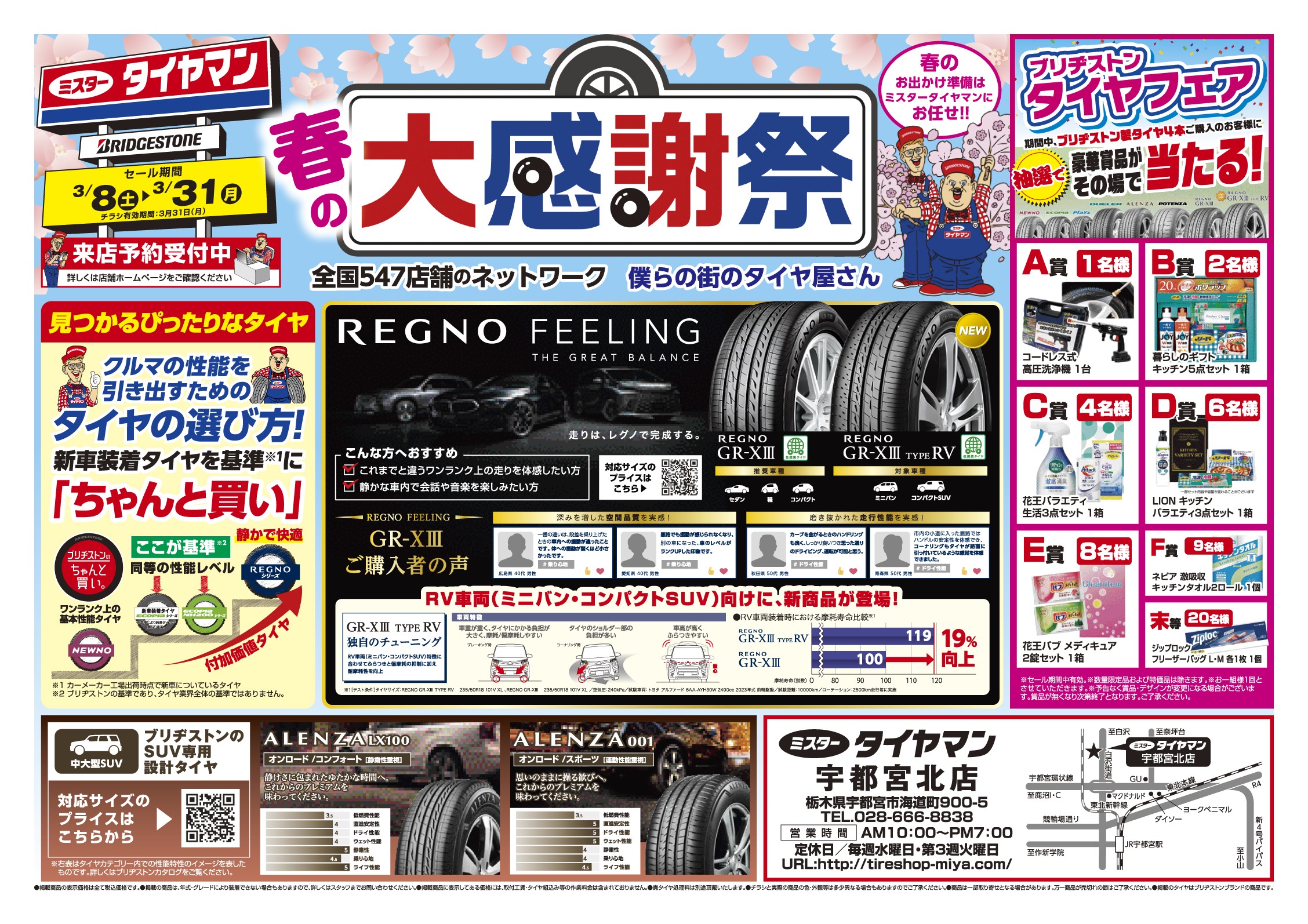 ブリヂストン製タイヤ4本お買い上げではずれ無の抽選会も行っております