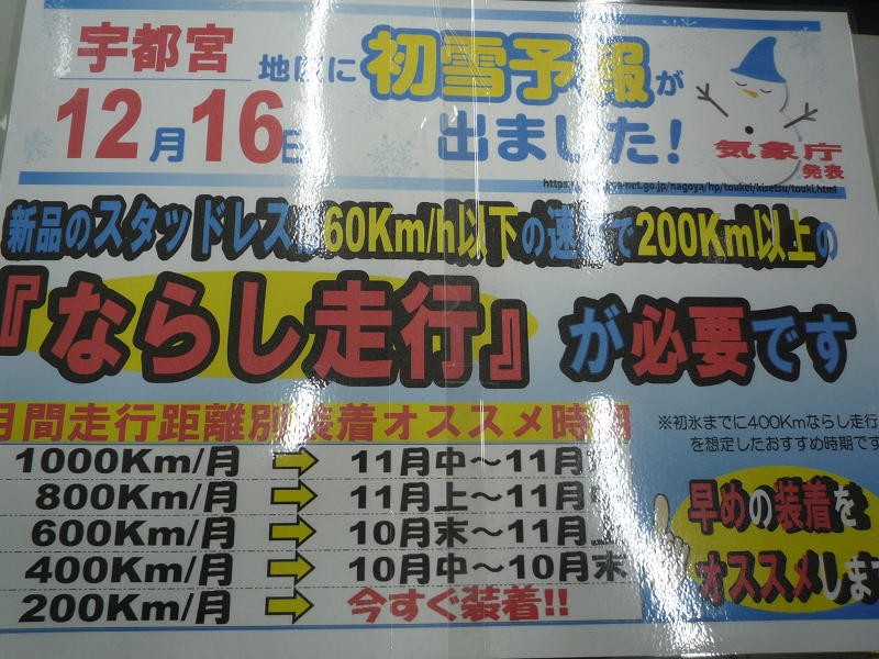 スタッドレスにも慣らし走行が必要になりますので、10月も残り僅かになりましたから
