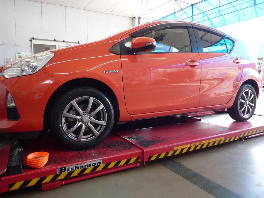 今回はオレンジがとっても鮮やかなアクアのタイヤ交換作業を行いました