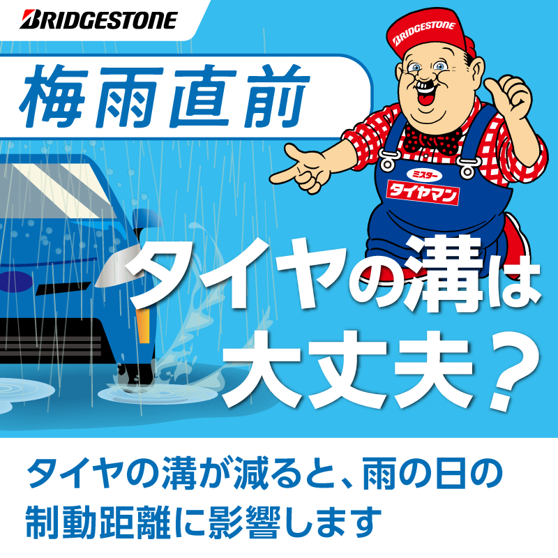 安全のため、梅雨入りする前にタイヤの残溝チェックをしておきましょう。