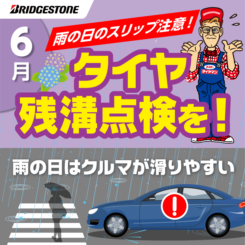 タイヤの溝が減っていると雨の日は滑りやすく危険です。