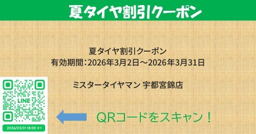 みなさまこんにちは。 ミスタータイヤマン宇都宮錦店でございます。