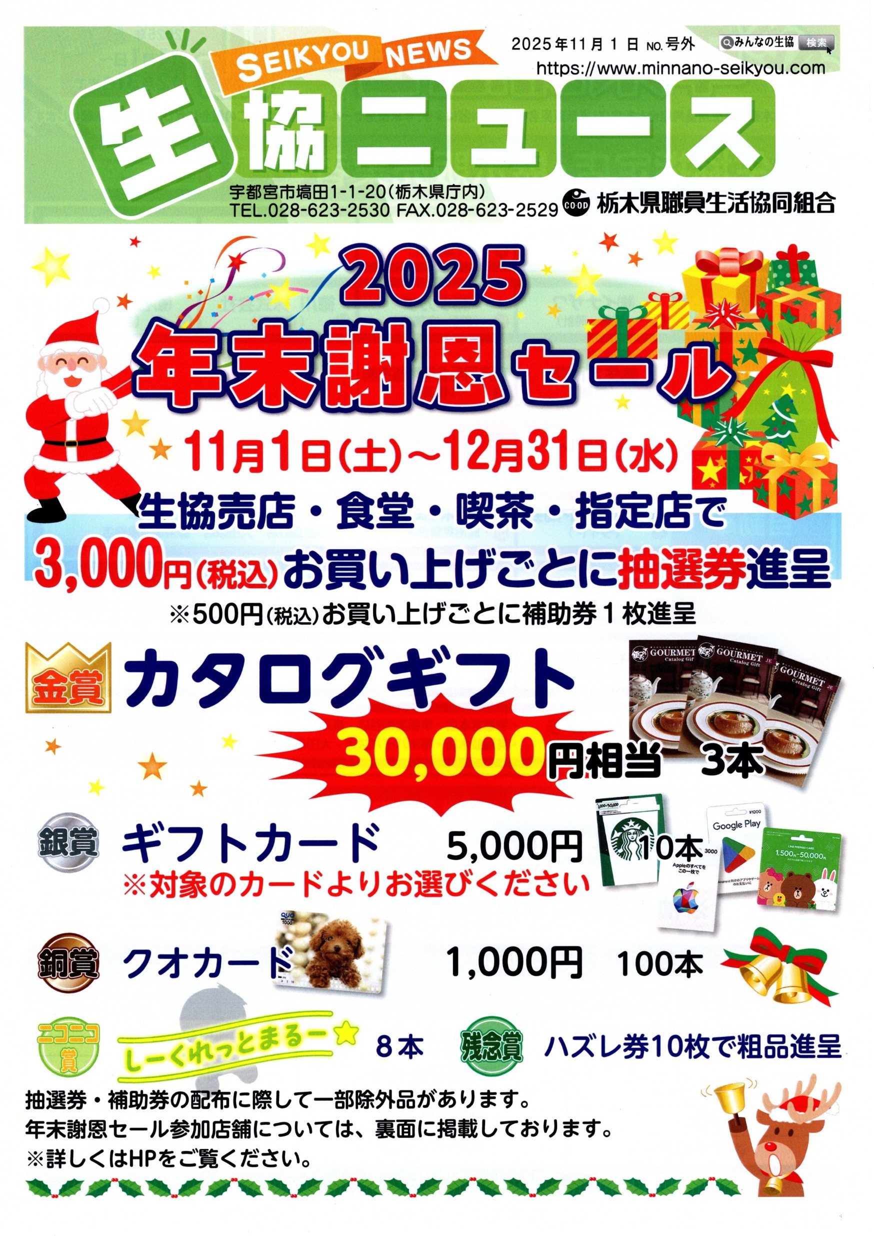 ⚡2025年末謝恩セール⚡ 当店は、今年も栃木県職員生活協同組合年末謝恩セールに共催致します。