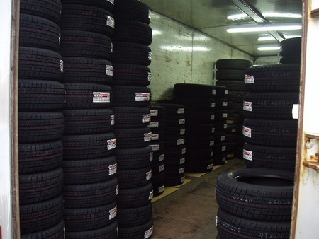 ガラガラだった倉庫もスタッドレスで埋まりつつあります。