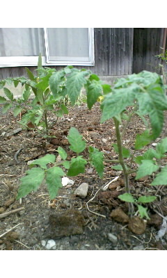 見に行ってみたら、トマトが2本植えてありました。