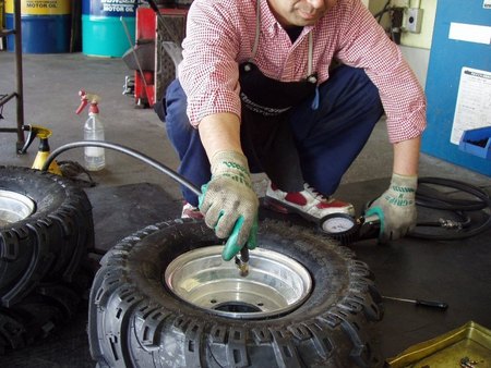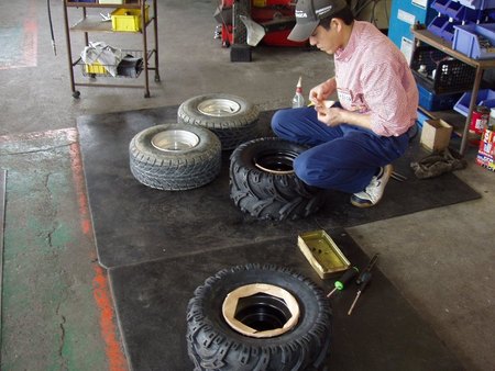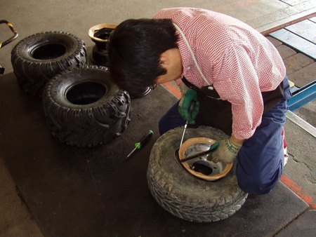 小さいタイヤレバーと使い込まれた自前のマイナスドライバーを使って