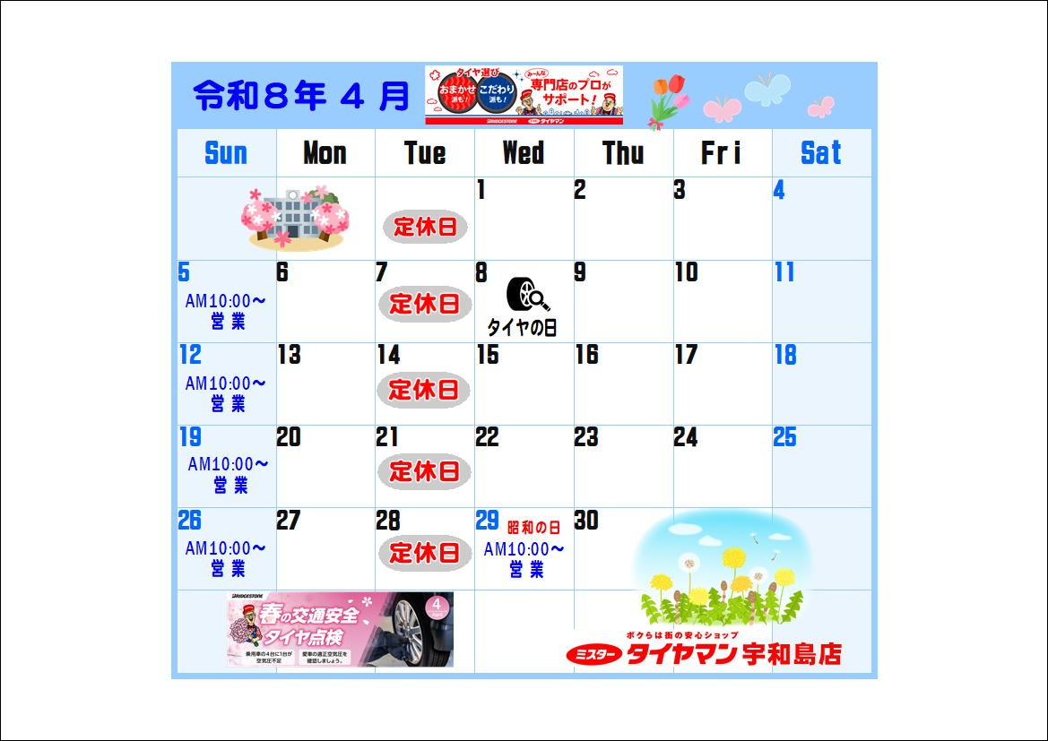 *4月の営業カレンダーです! 今月も宜しくお願い致します<(_ _)>