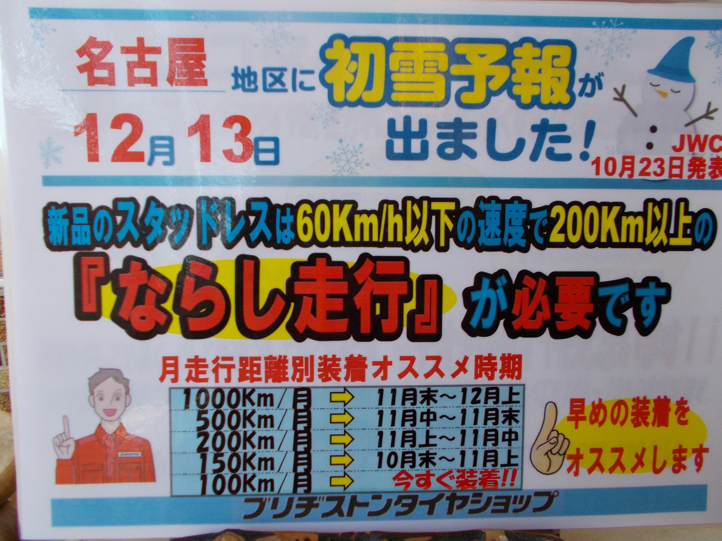 取り付け混雑回避、新品スタッドレスのならし走行も兼ねて、11月からの