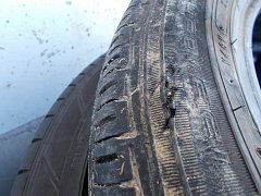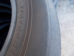 常連様のノア、2回目のタイヤ交換です。画像のように減りすぎた部分がテカっとります。 こうなりますと雨の日が怖いですね。横断歩道の白線の上でのブレーキを想像するとゾッとします。