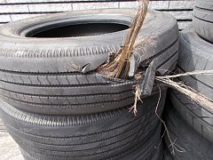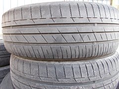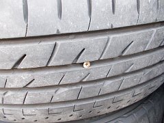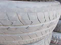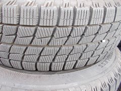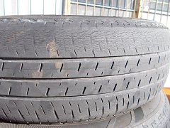 画像のようにツルツルに減ってしまった為、新品にタイヤ交換させて頂きました。 これは雨の日の運転相当怖いですよ。白線の上のブレーキはヤバいです。